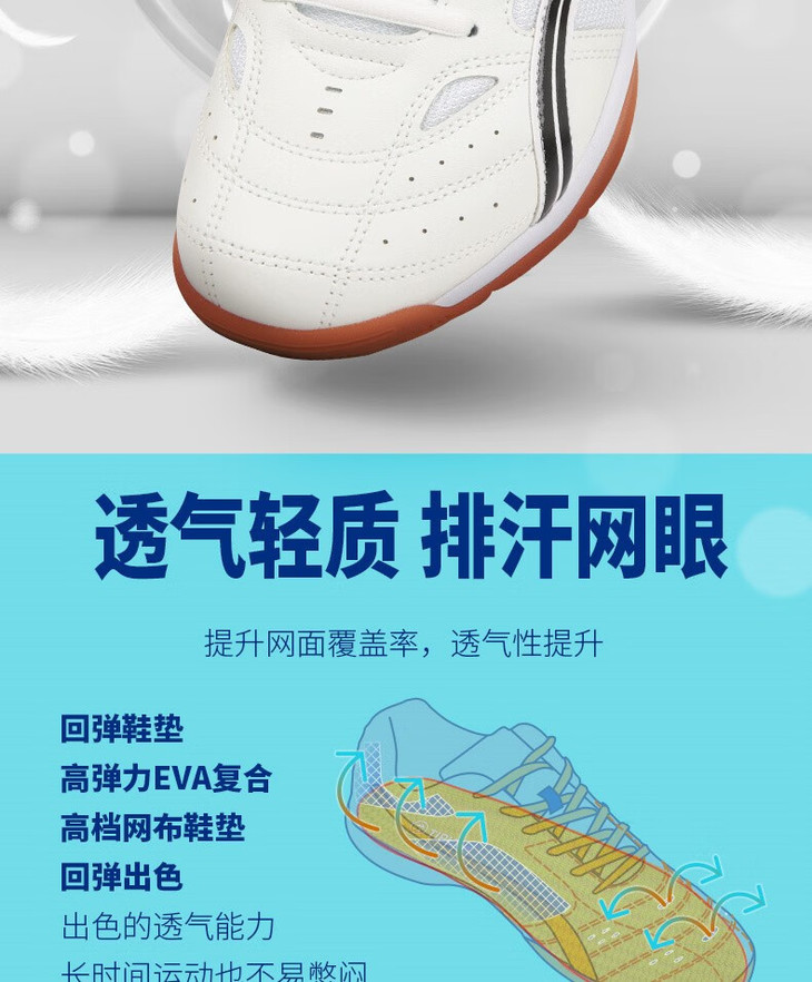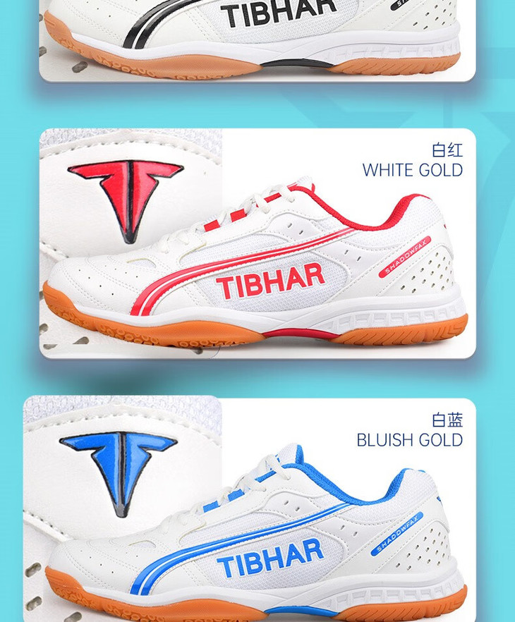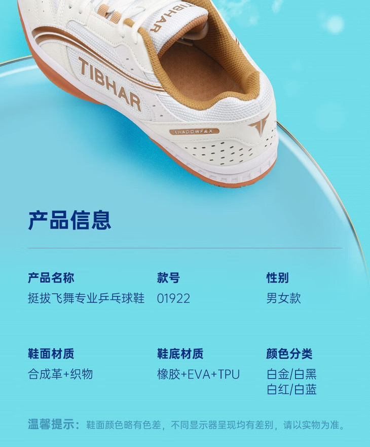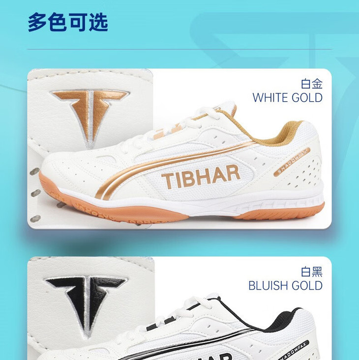 Tibhar挺拔乒乓球鞋01922挺拔飞舞专业乒乓球运动鞋防滑透气男女同款白金色