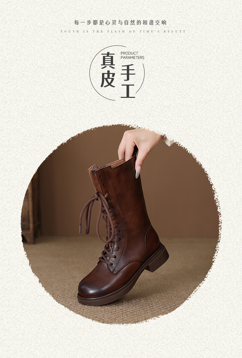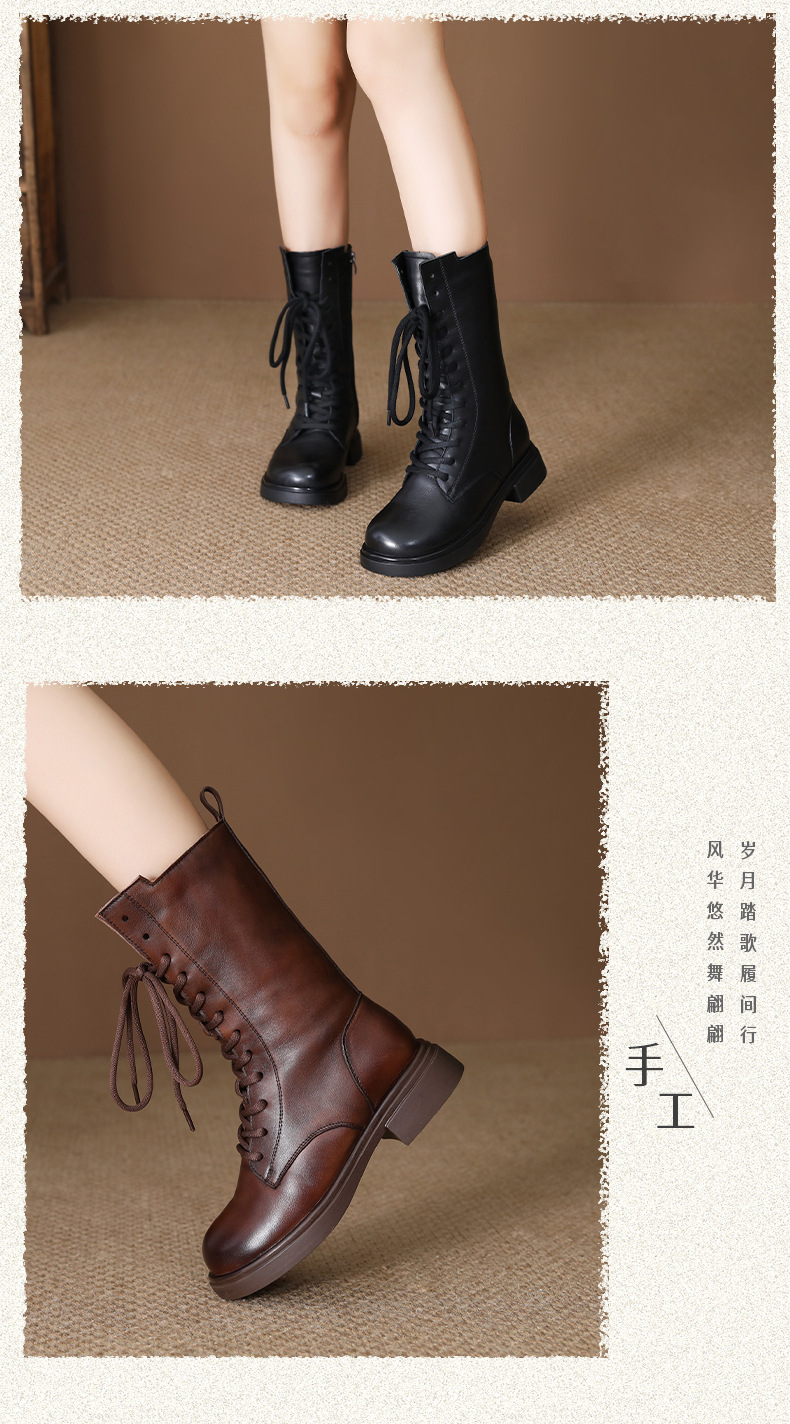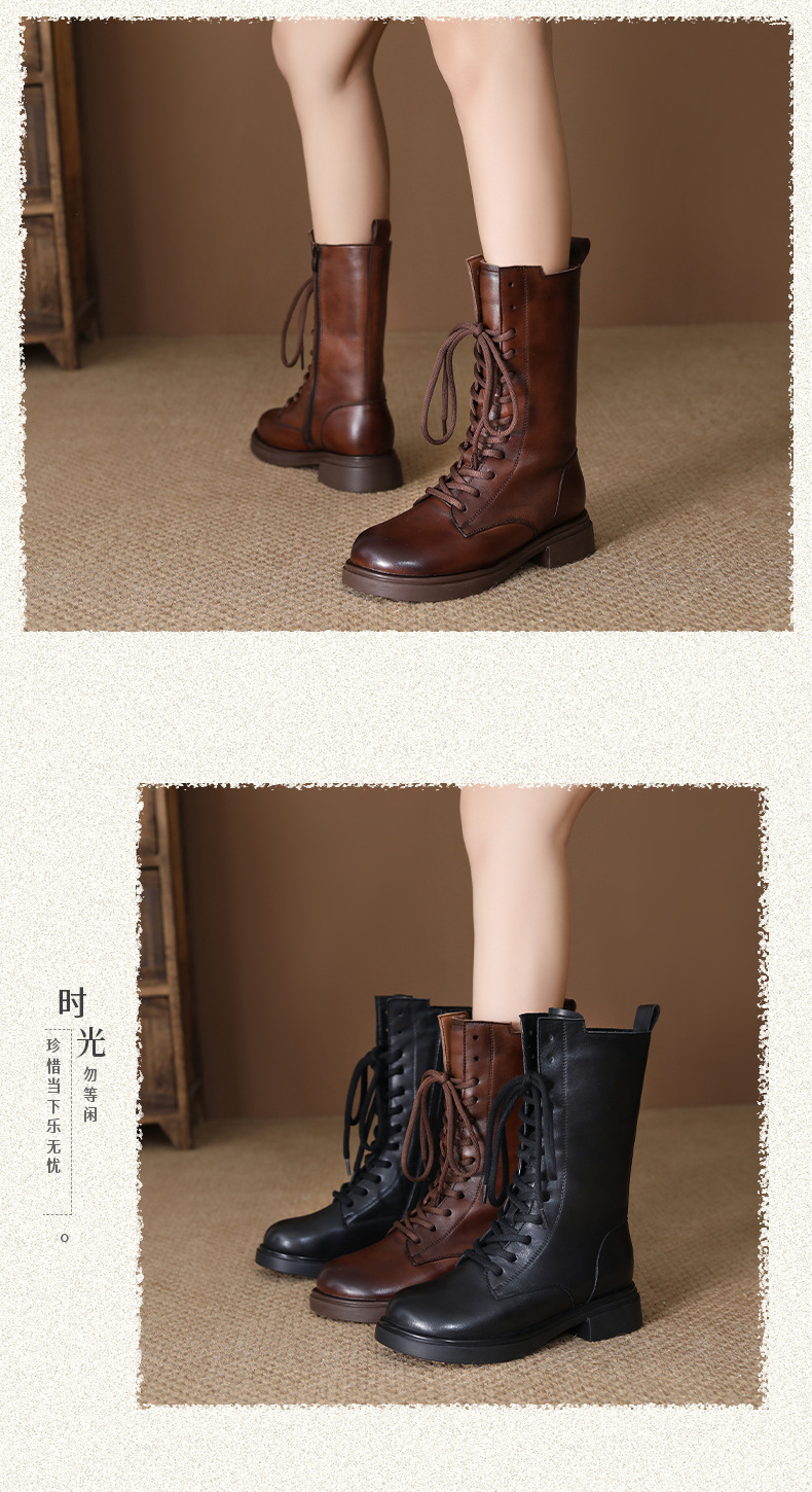 FR 85663骑士靴复古英伦风粗跟马丁靴