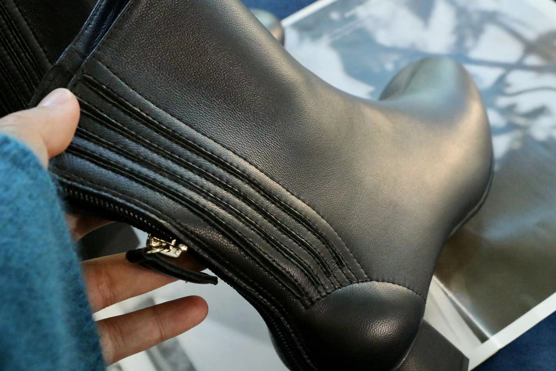 鞋面:黑色是超软羊皮,焦糖色,咖绿色是高丝光翻毛皮