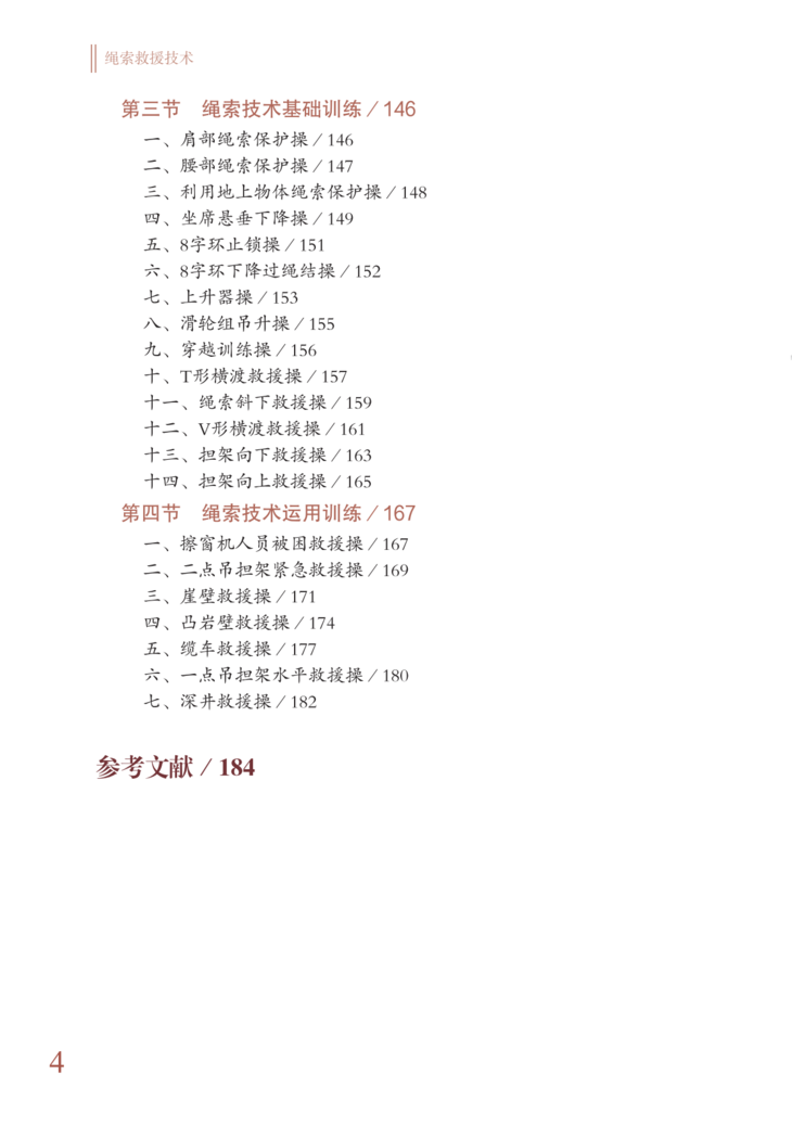 目前,我国消防部队面临各种急难险重抢险救援任务的严峻挑战。本书针对绳索救援技术理念的变化、绳索救援装备和人员编制、分工等特点,吸收了近几年绳索救援技术改革和实践的新经验,借鉴了国内外绳索救援的新技术,是绳索救援技术在高空救援、山岳救援、水域救援等各方面经验提炼总结的新成果,具有很强的实用性、指导性和可读性。