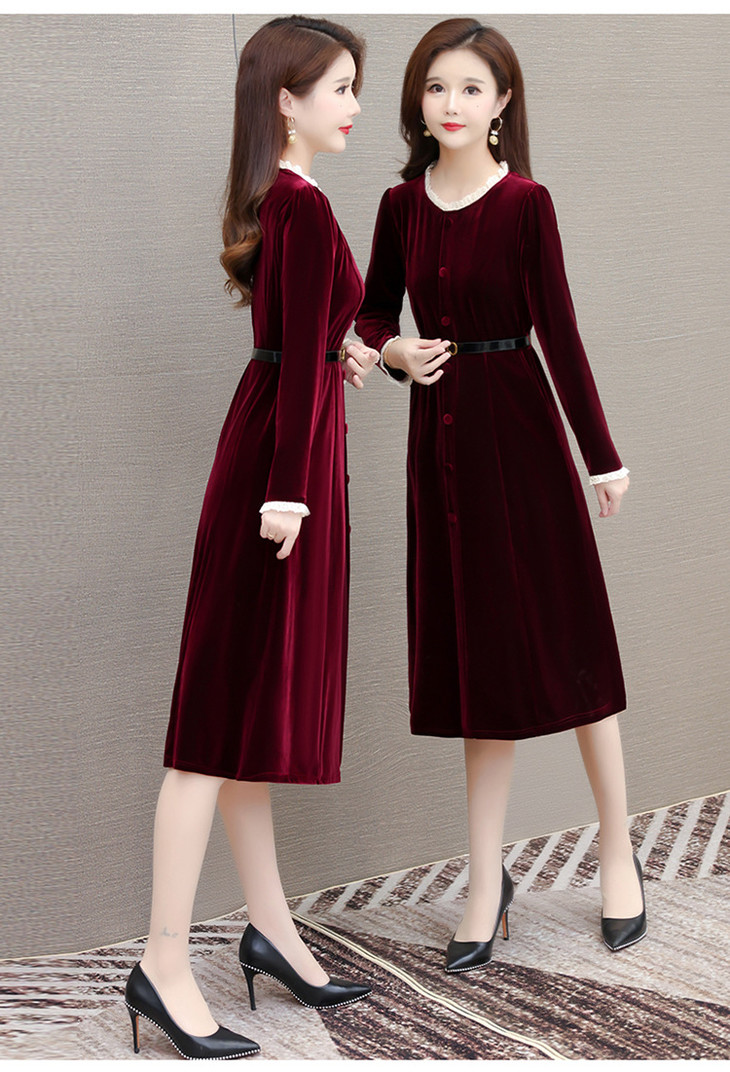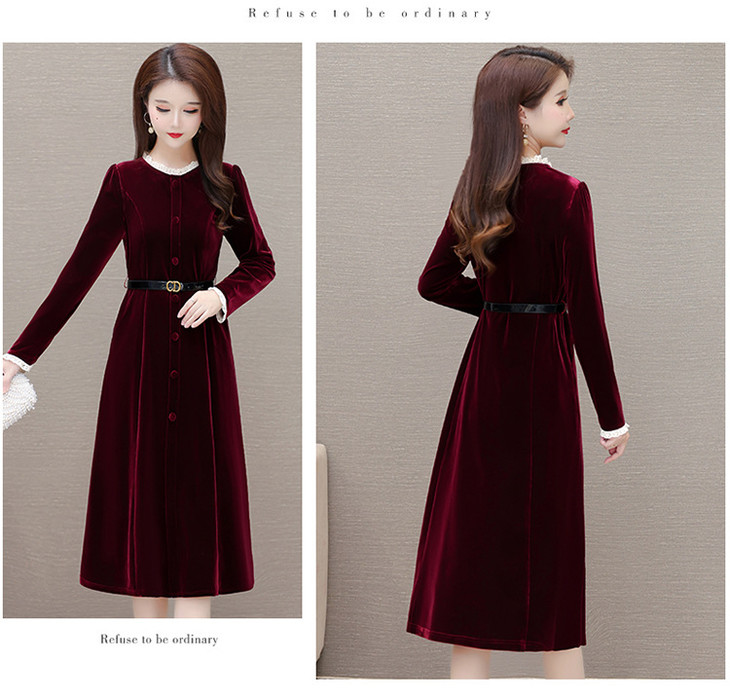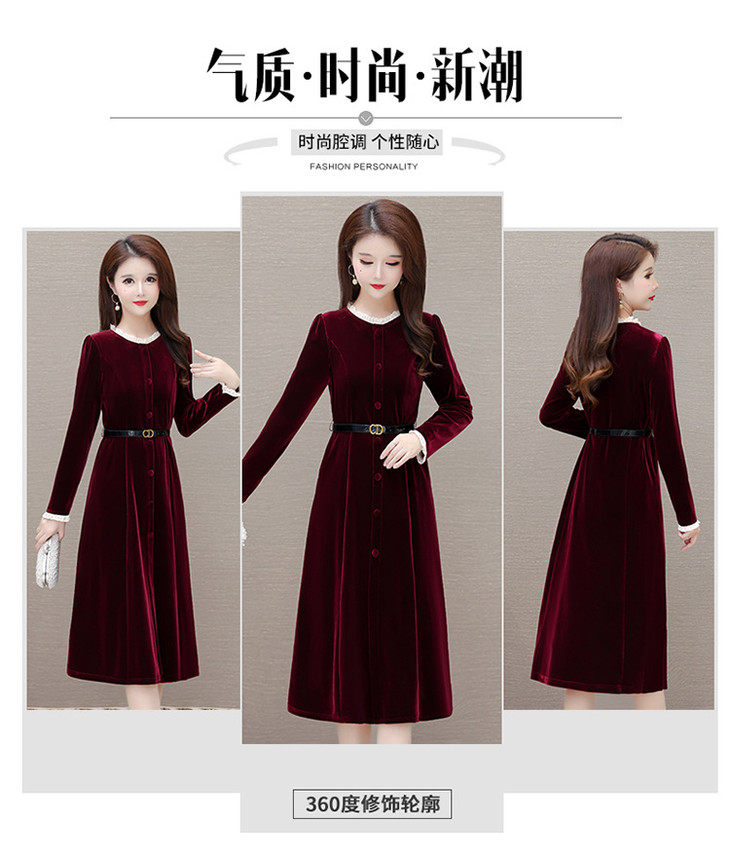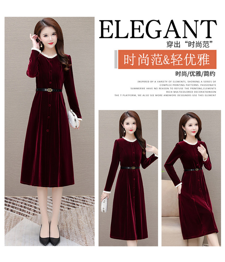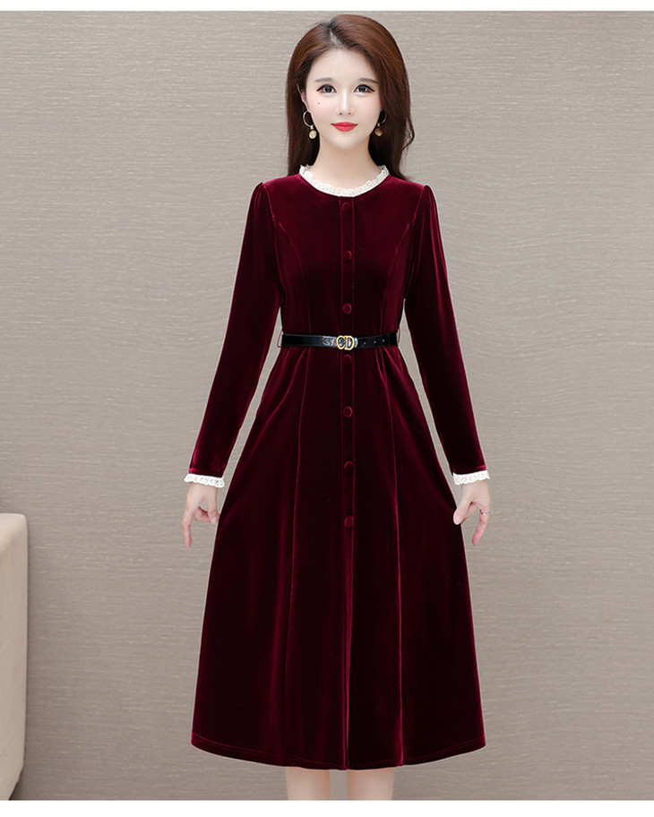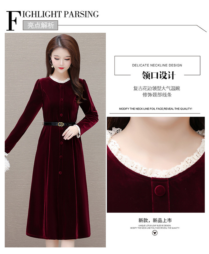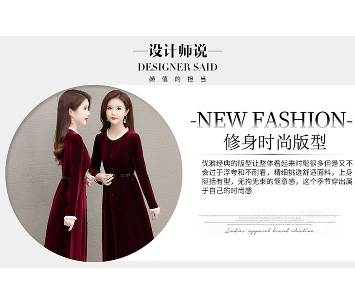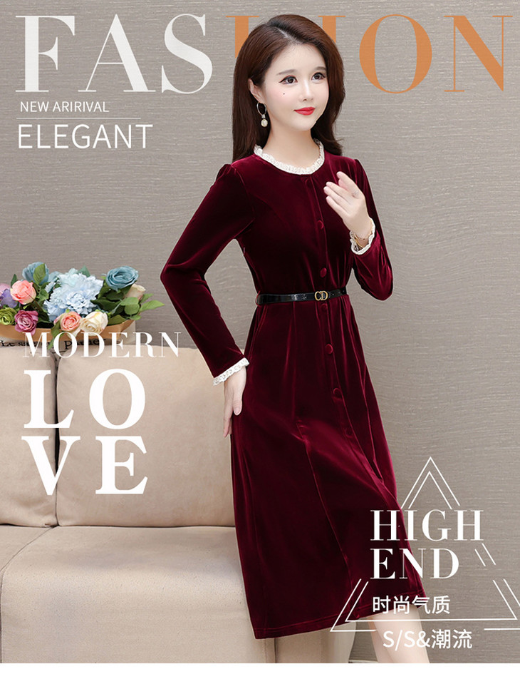 时尚花边圆领长袖妈妈装,中长款收腰裙QYM-LRX-1315C362-Y