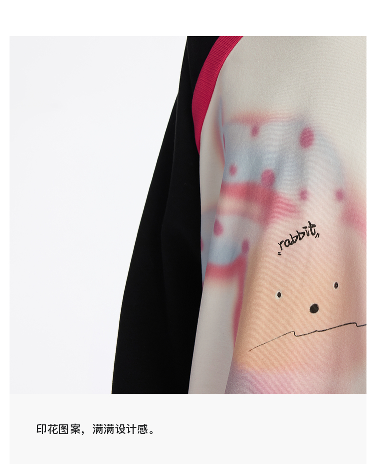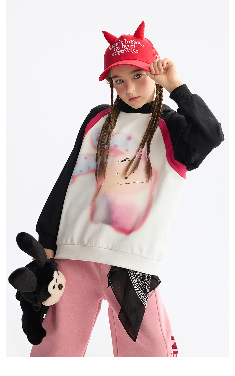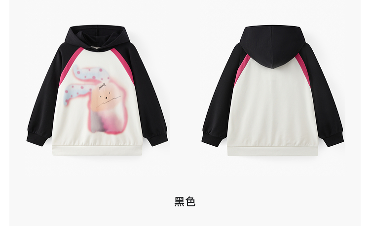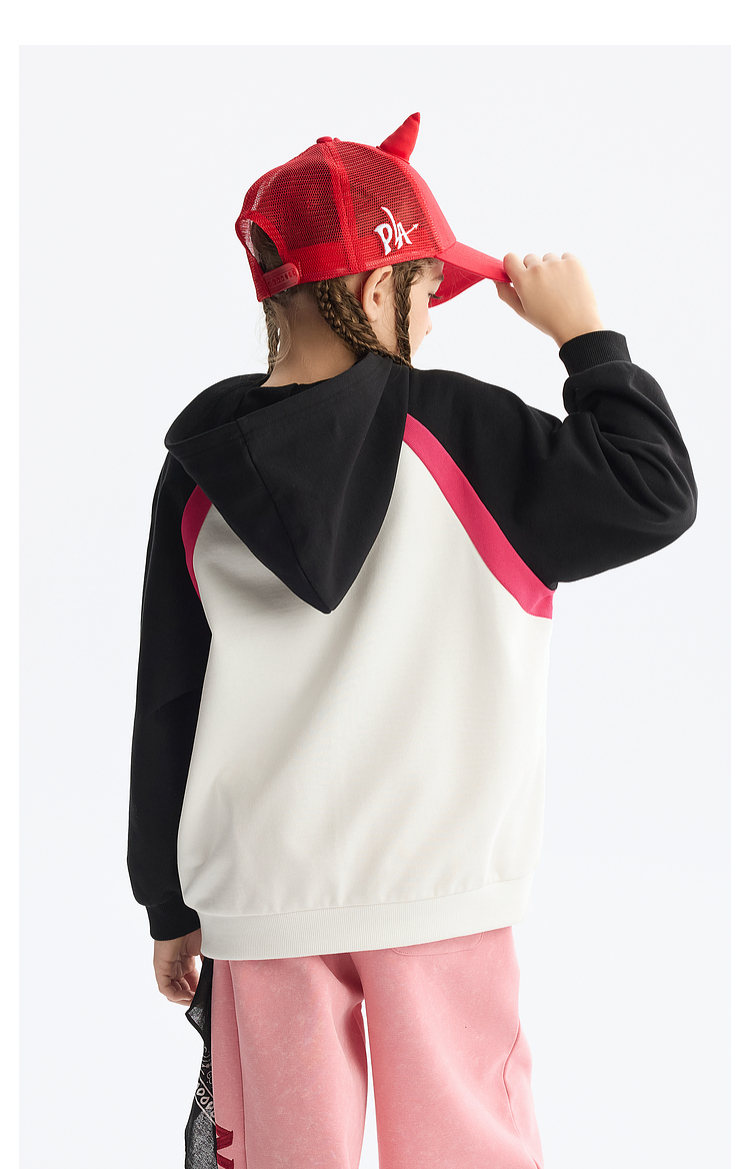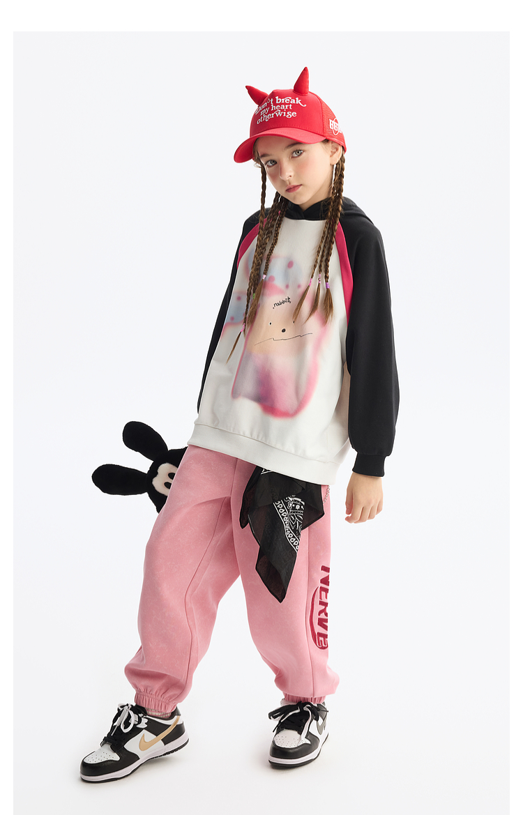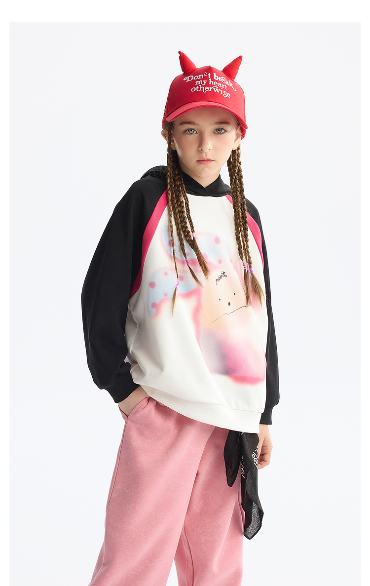 【MQD】女童卫衣2025春新款儿童连帽撞色插肩袖印花百搭上衣外套