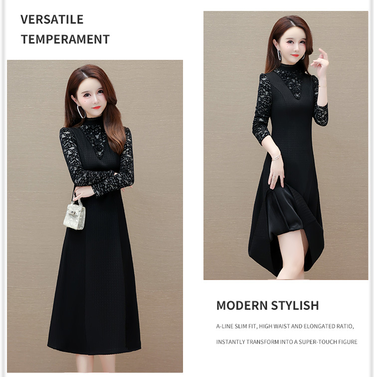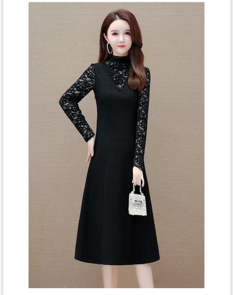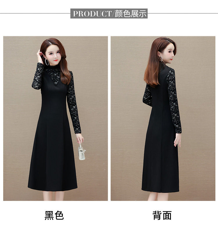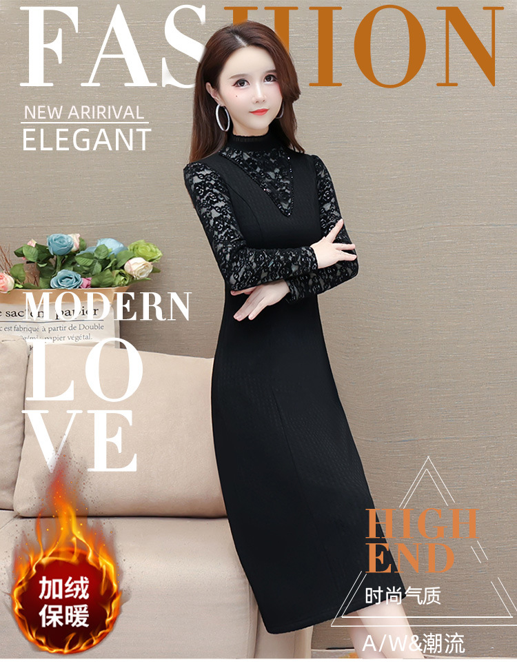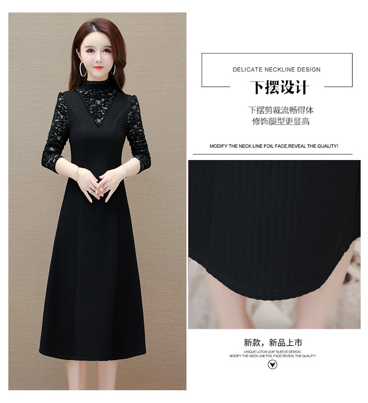 黑色加绒连衣裙网纱拼结,提花裙保暖打底裙长裙QYM-LRX-1313DEPY-Y