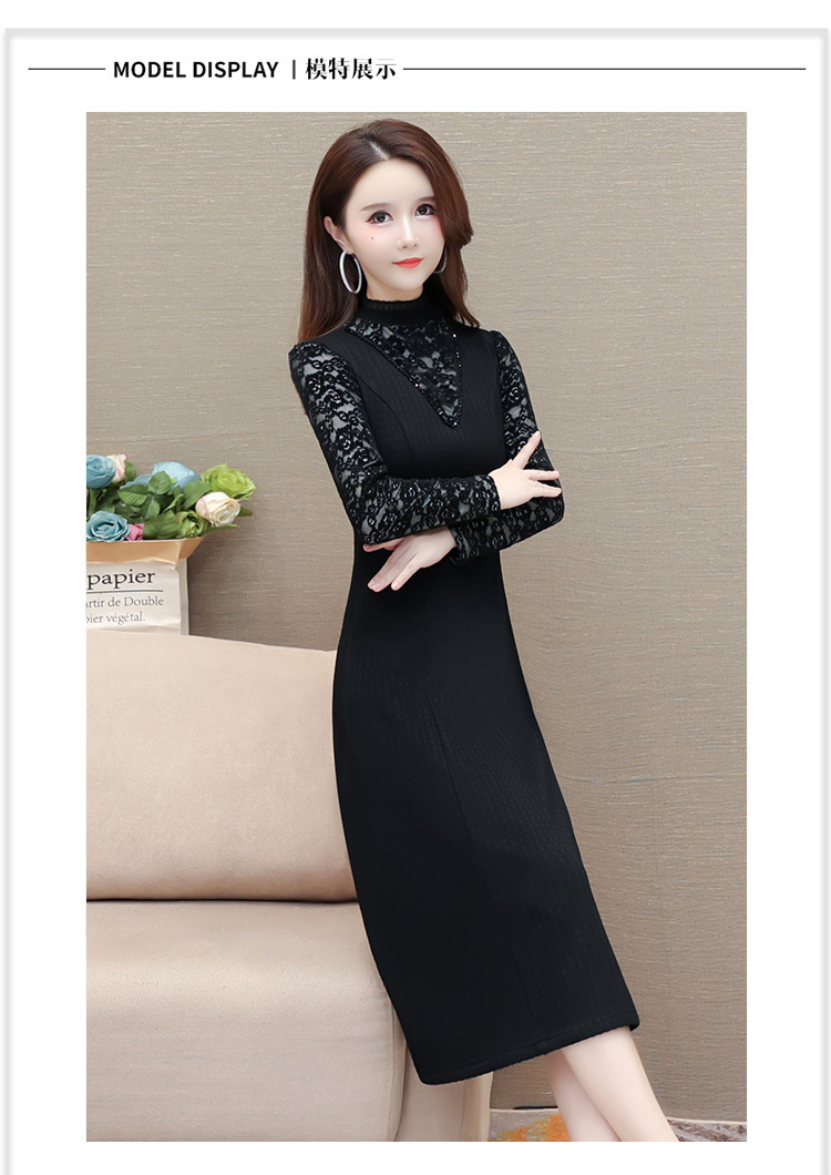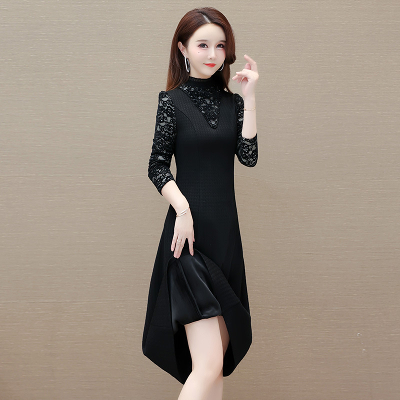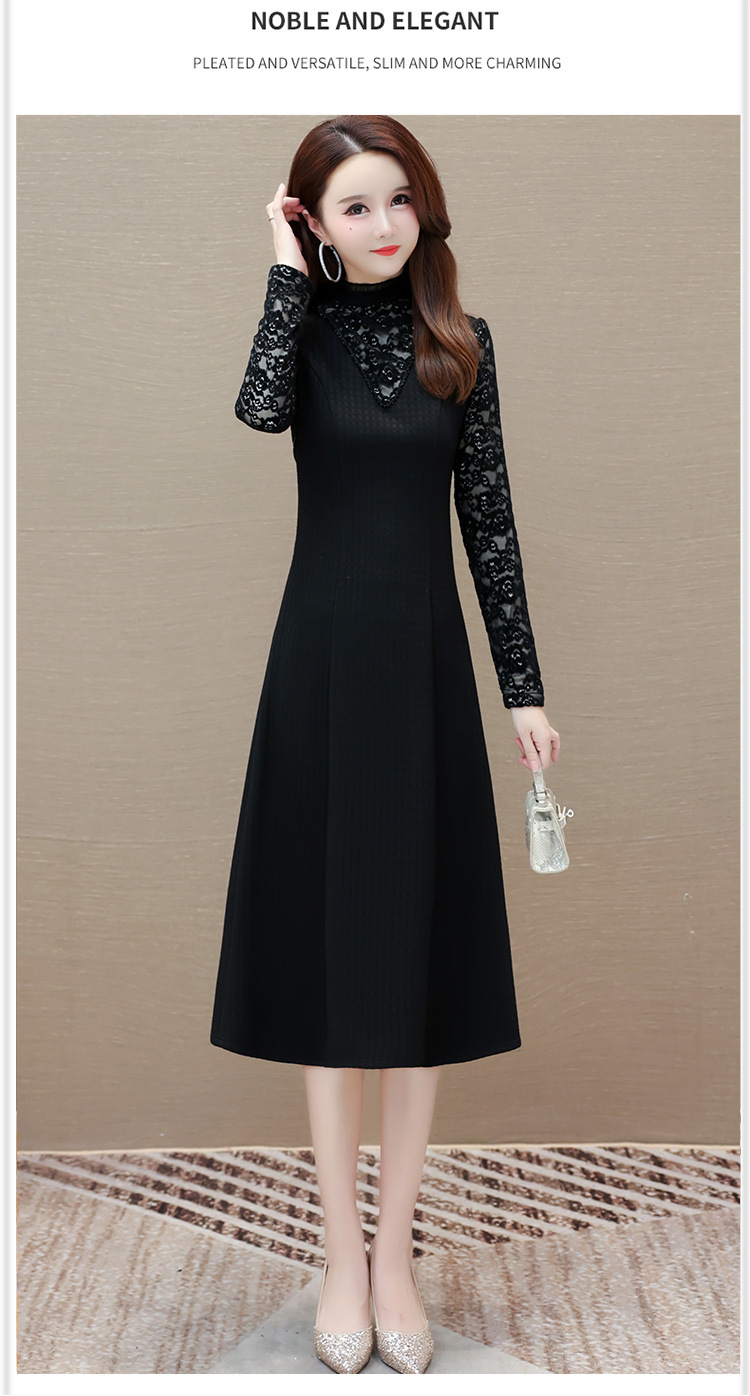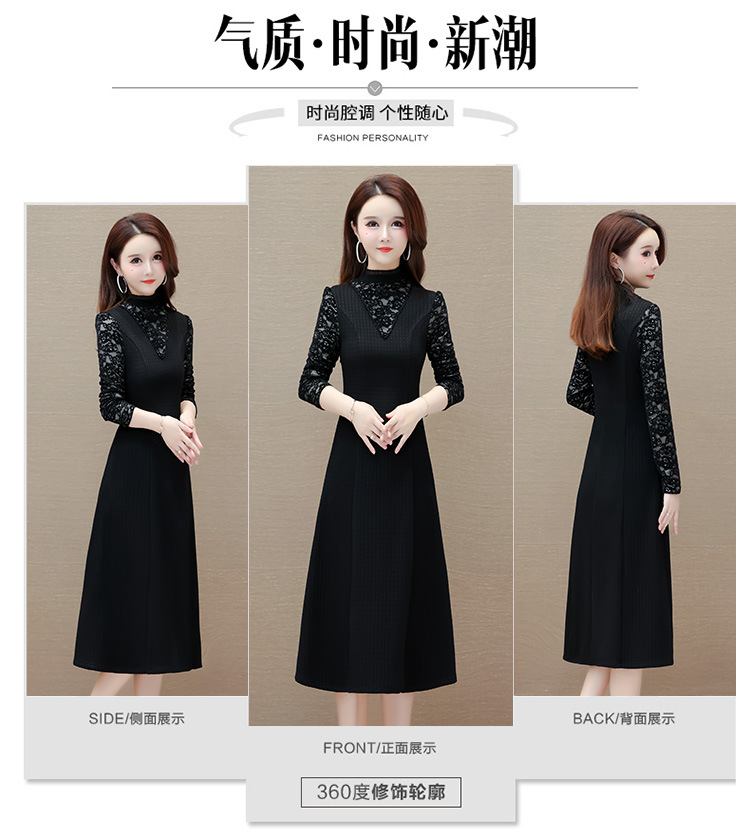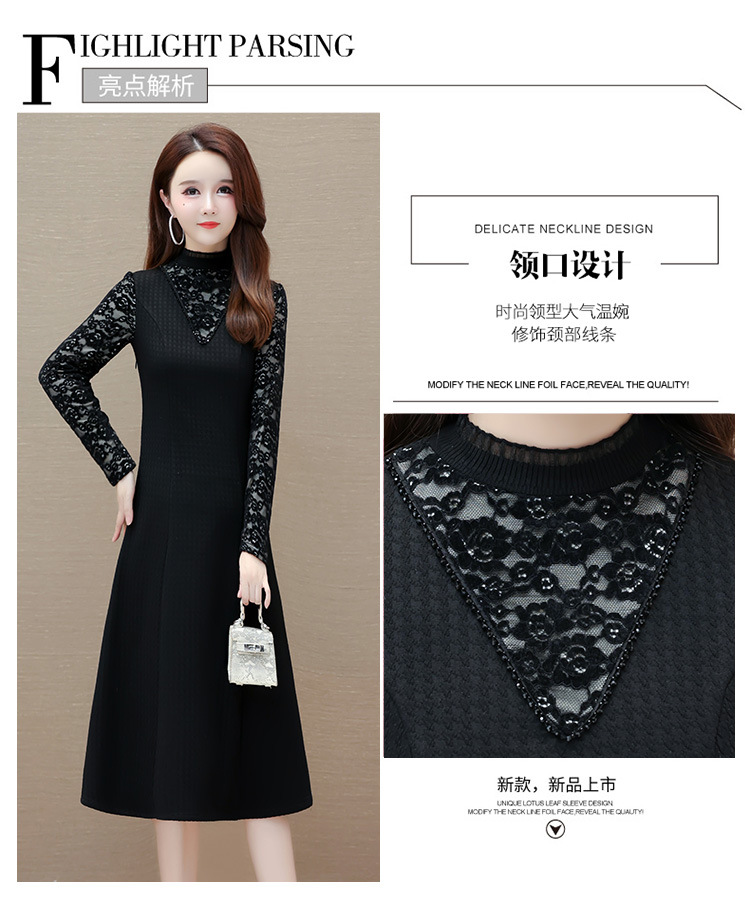 黑色加绒连衣裙网纱拼结,提花裙保暖打底裙长裙QYM-LRX-1313DEPY-Y
