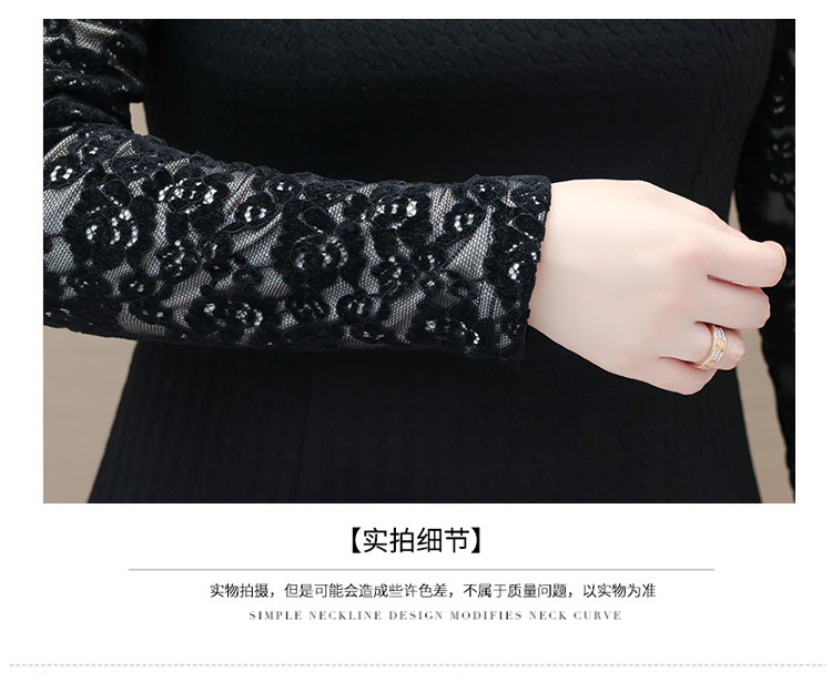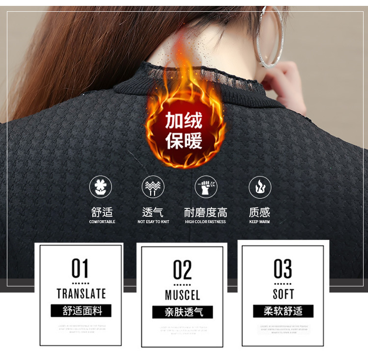 天鹅绒内搭半高领蕾丝针织打底衫 雪1091