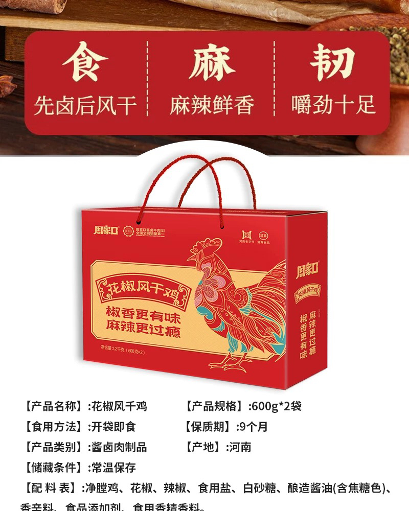 周家口花椒风干鸡熟食礼盒企业团购福利送礼集采一件代发1200g