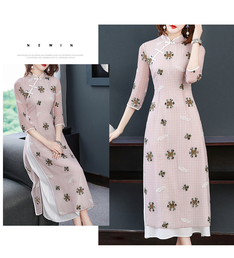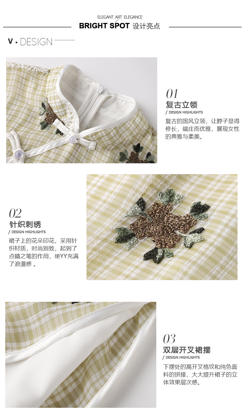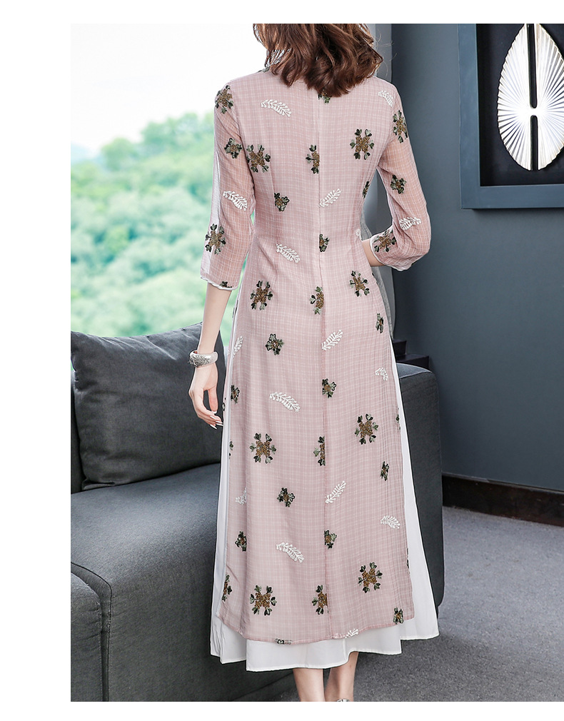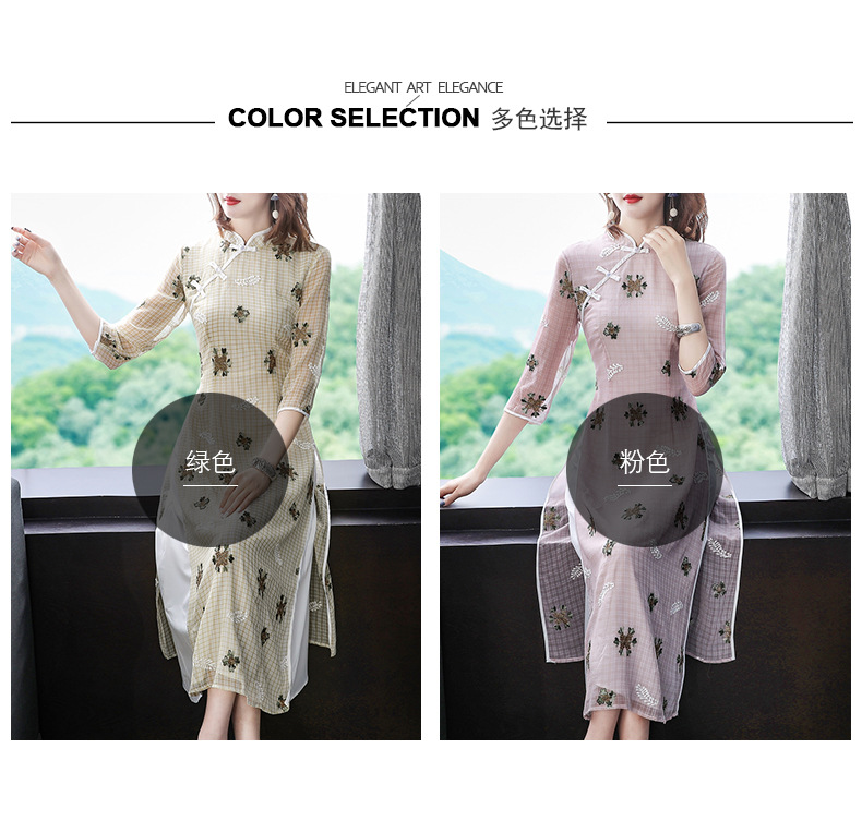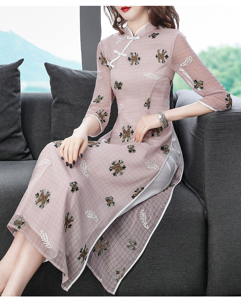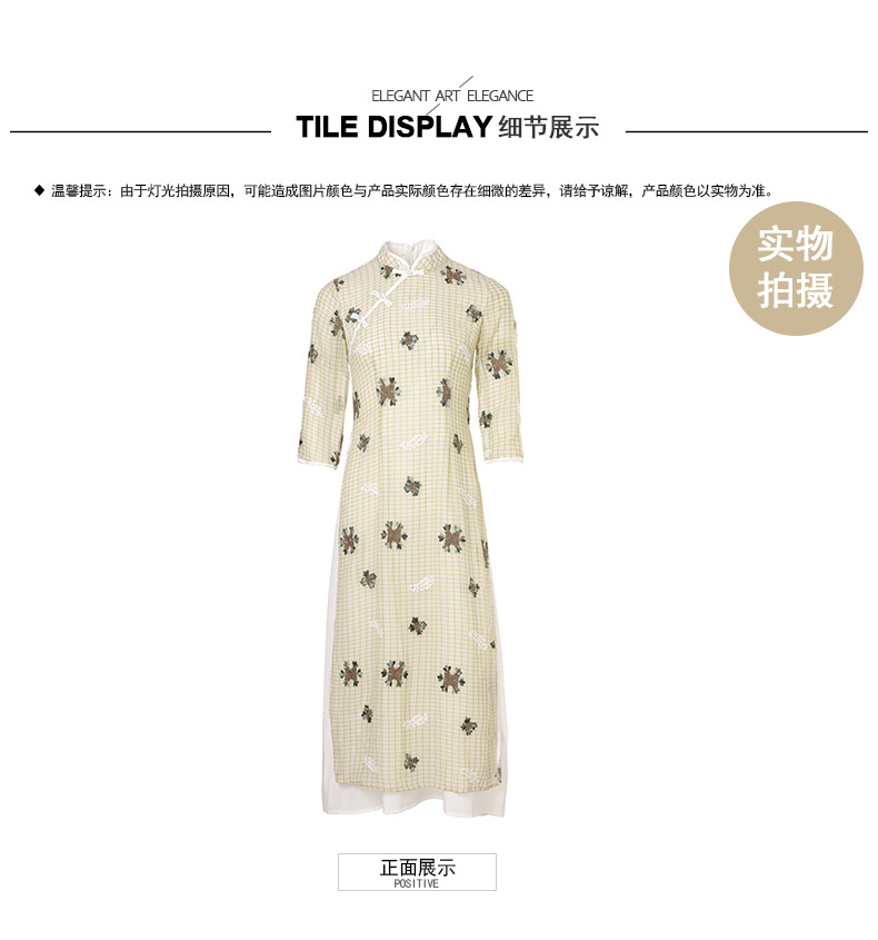 THX-020204218新款气质立领复古百搭五分袖立领时尚印花连衣裙