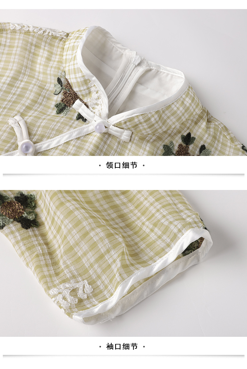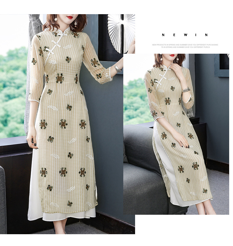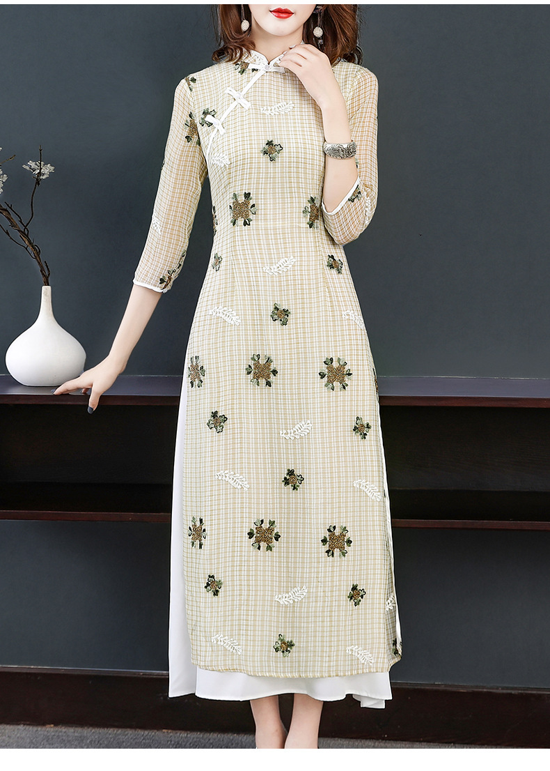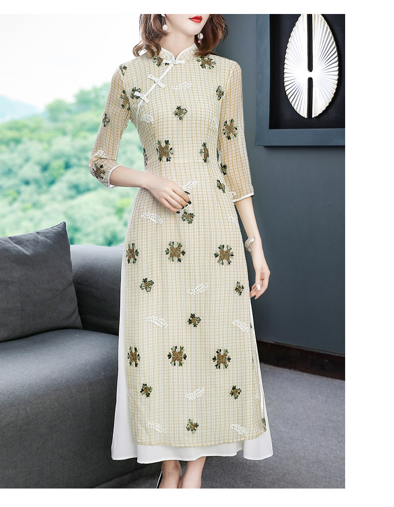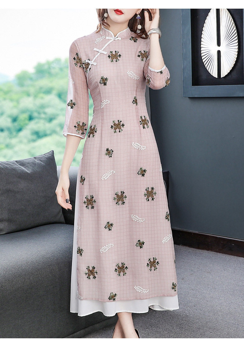 THX-020204218新款气质立领复古百搭五分袖立领时尚印花连衣裙