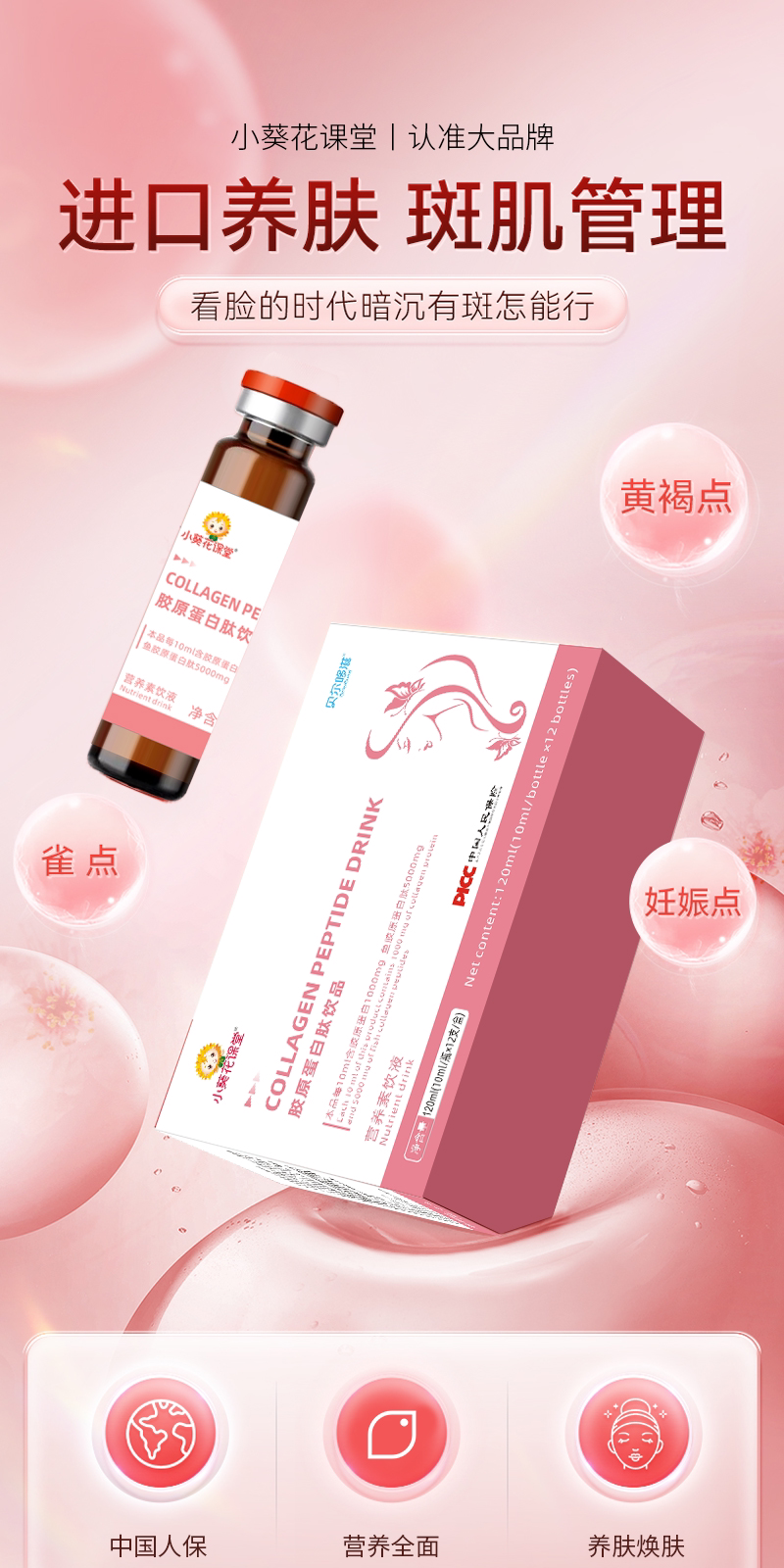 【女神节福利】小葵花课堂 胶原蛋白肽饮品12支女士孕产妇女性烟酰胺3肽进阶小鱼胶原蛋白肽口服液