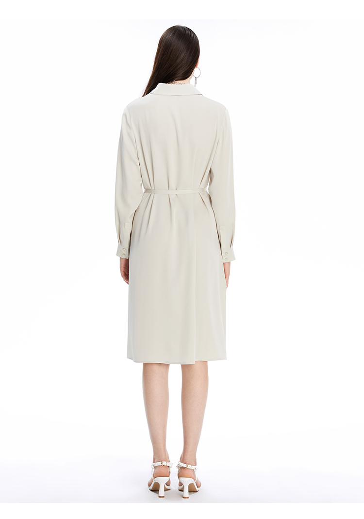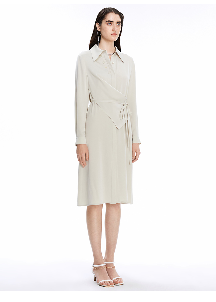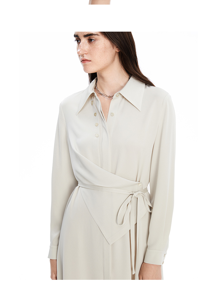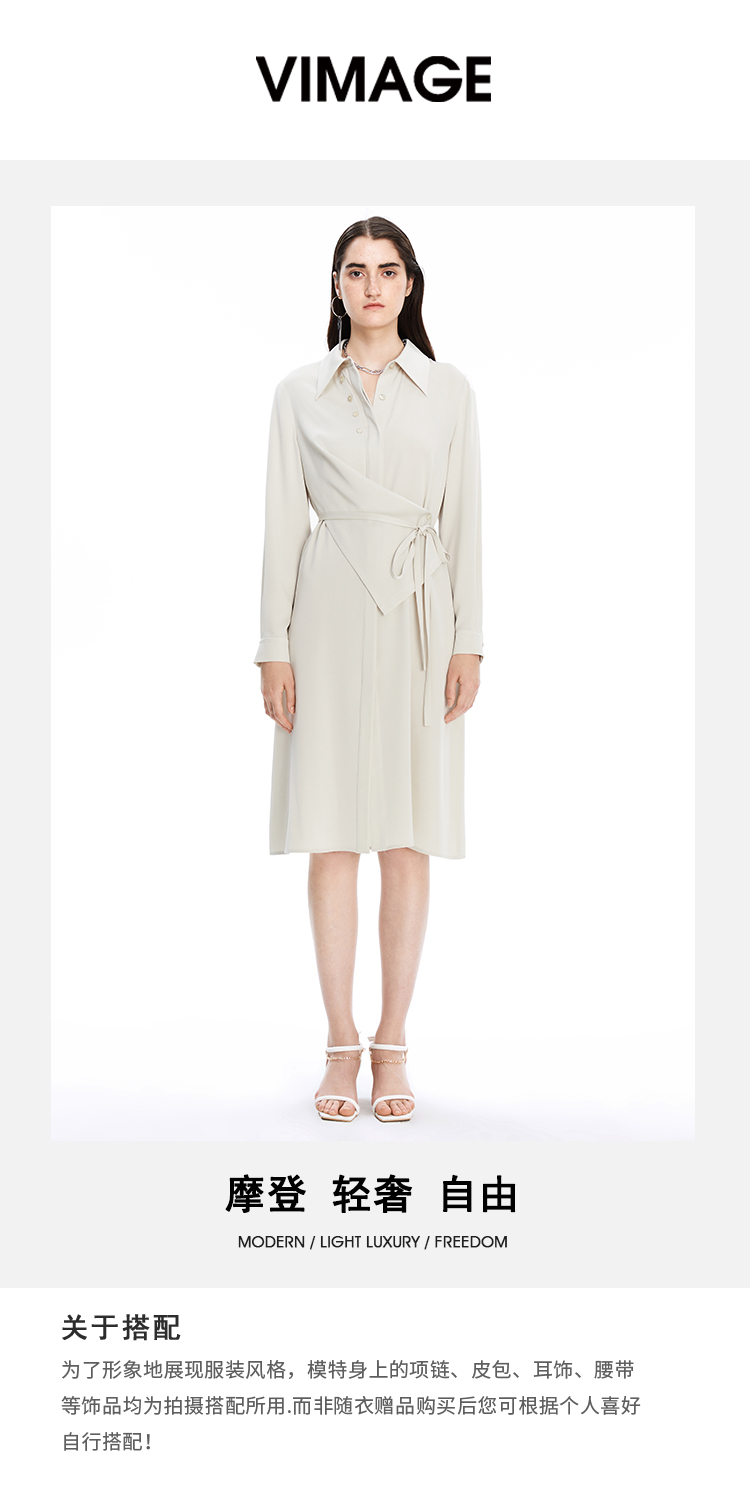 VIMAGE纬漫纪秋季新款系带束腰优雅纯色显瘦连衣裙V1607210