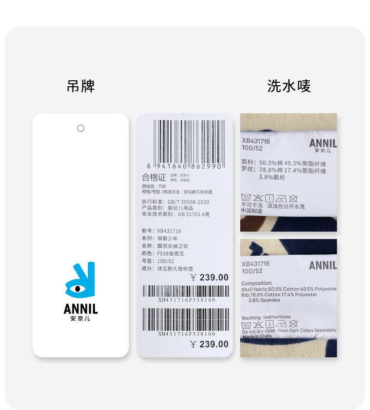 男童炫酷舒弹卫衣安奈儿童装实体店同款XB431716