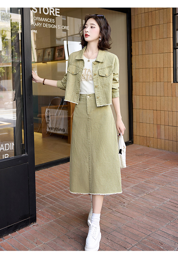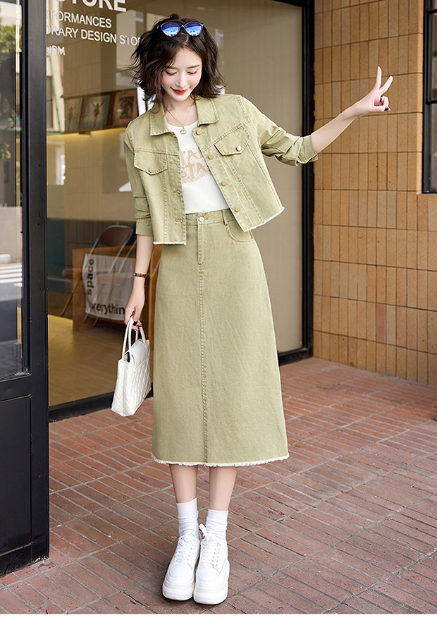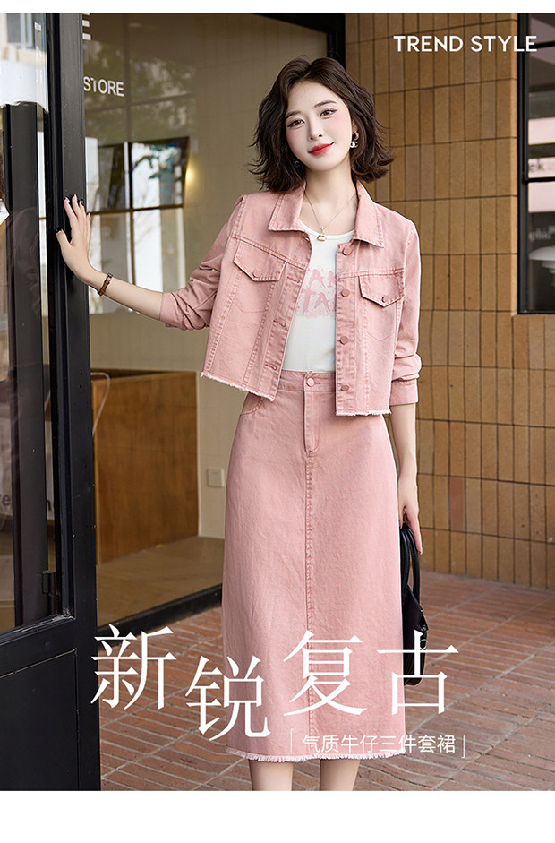 活动爆款【自营】衣周期~(三件套)A07 休闲牛仔穿搭套装新款设计感炸街时尚修身包臀裙-喜出