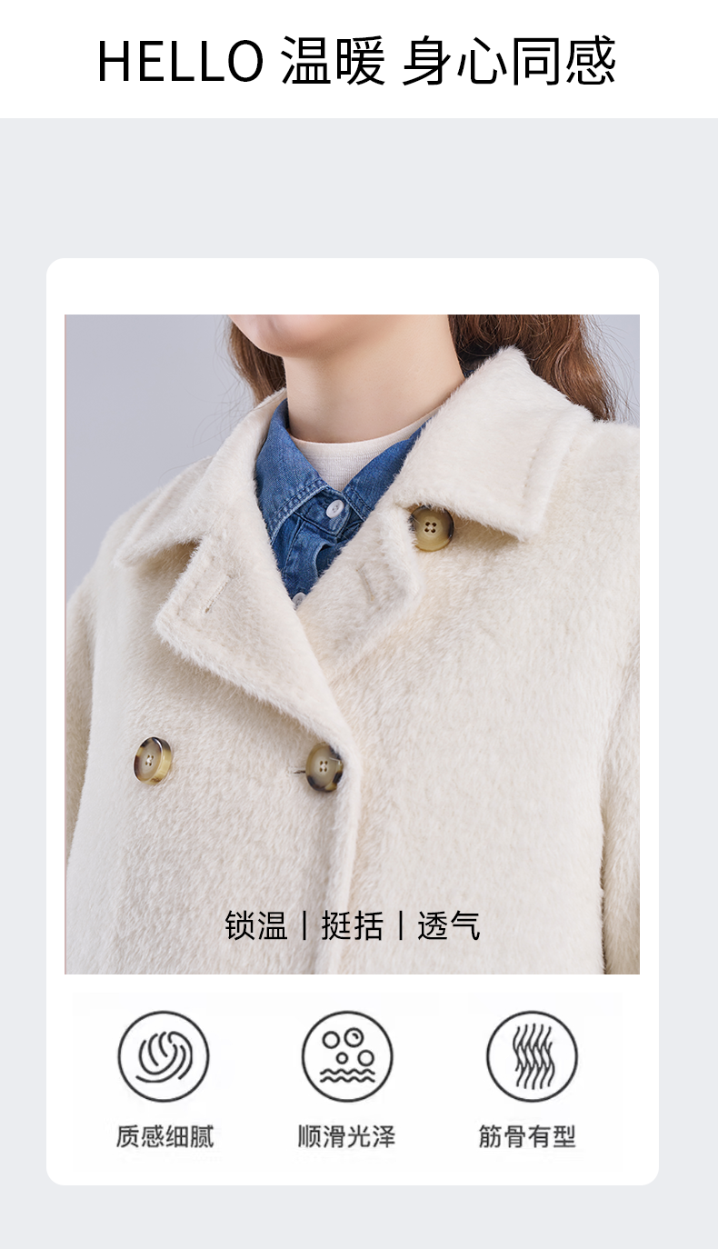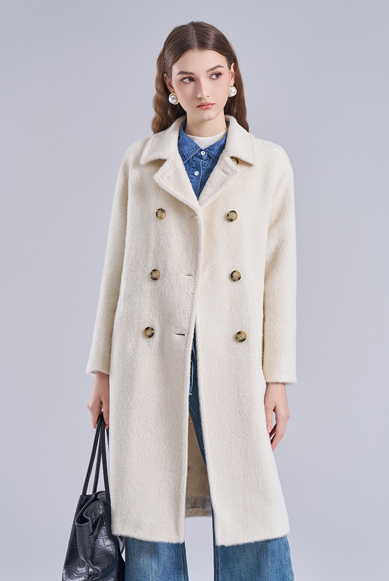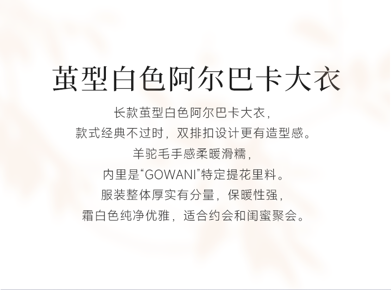 【羊驼毛】乔万尼秋冬新款大衣重磅羊驼毛高级显瘦白色呢大衣EI4A546