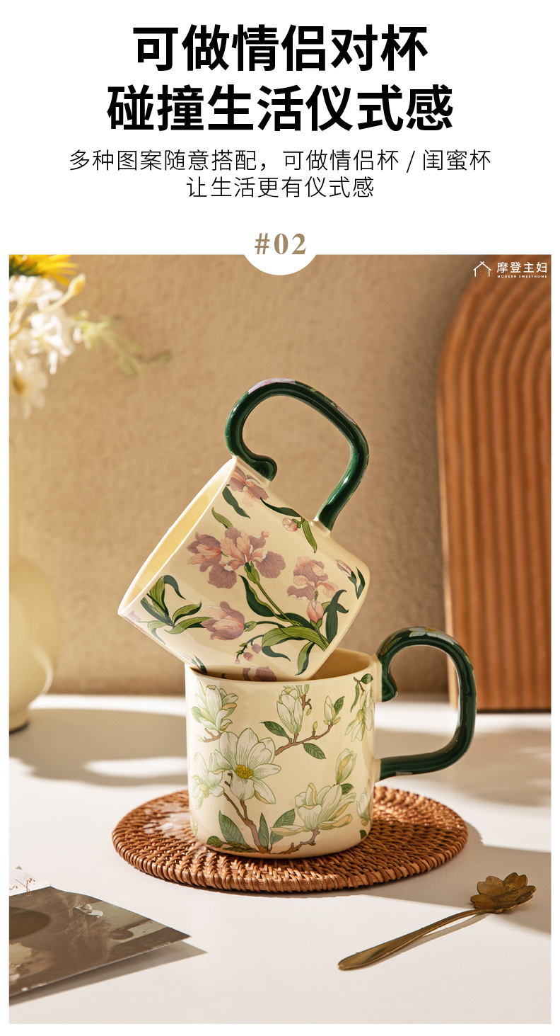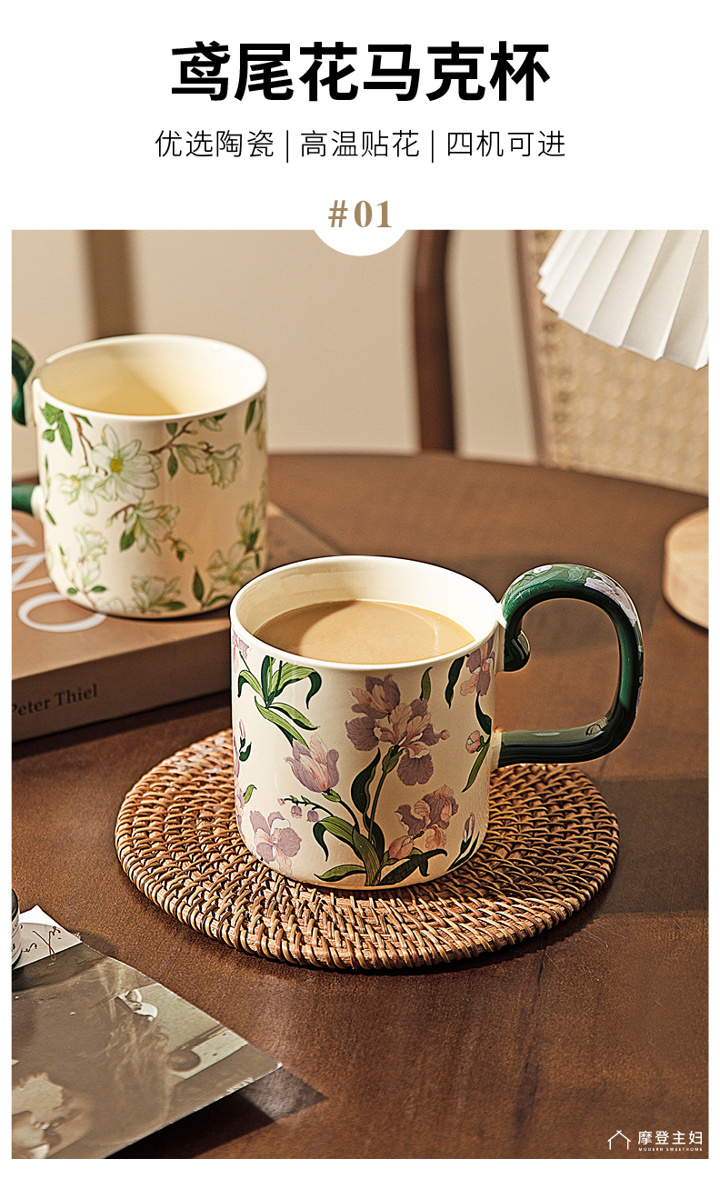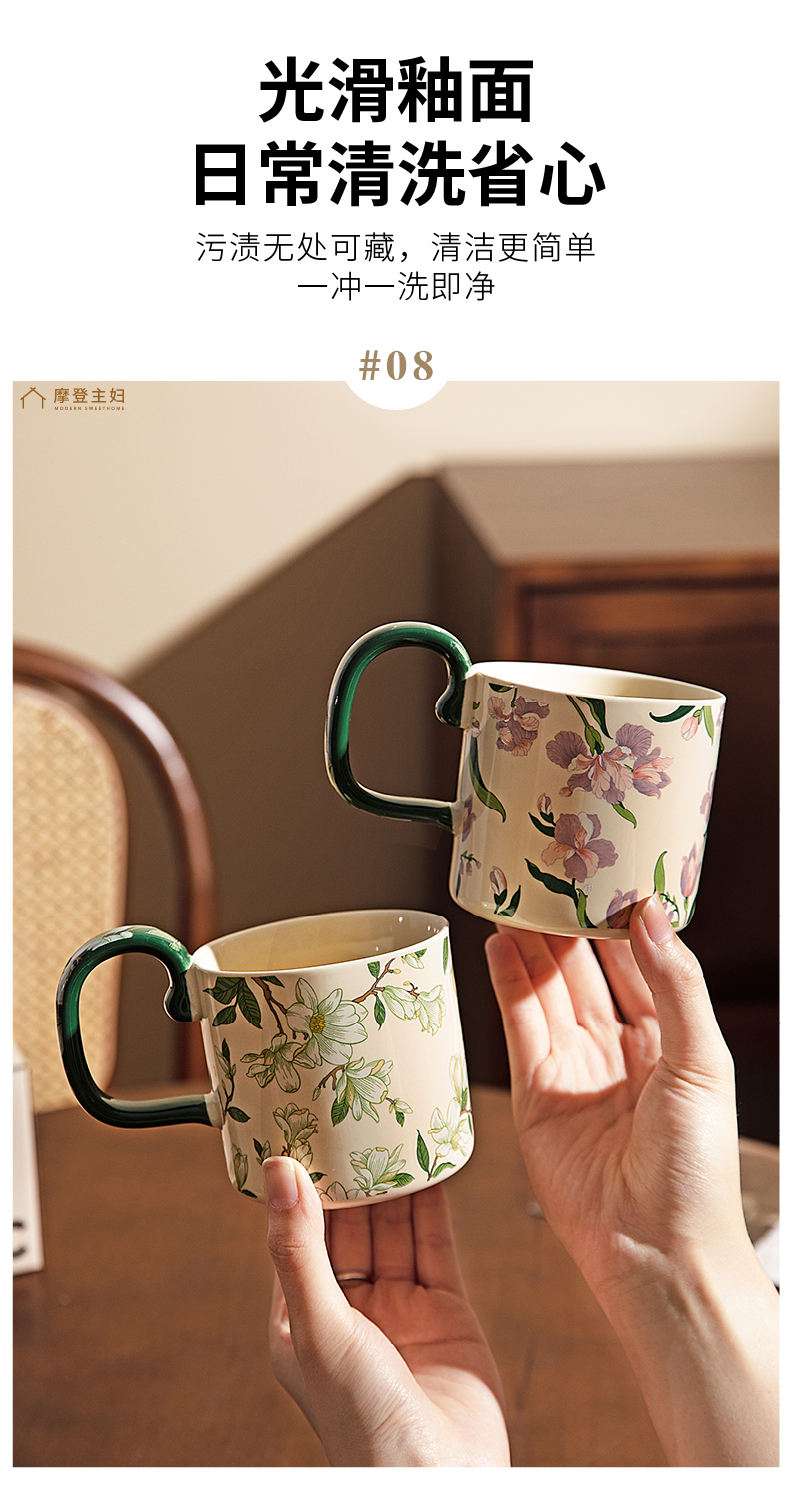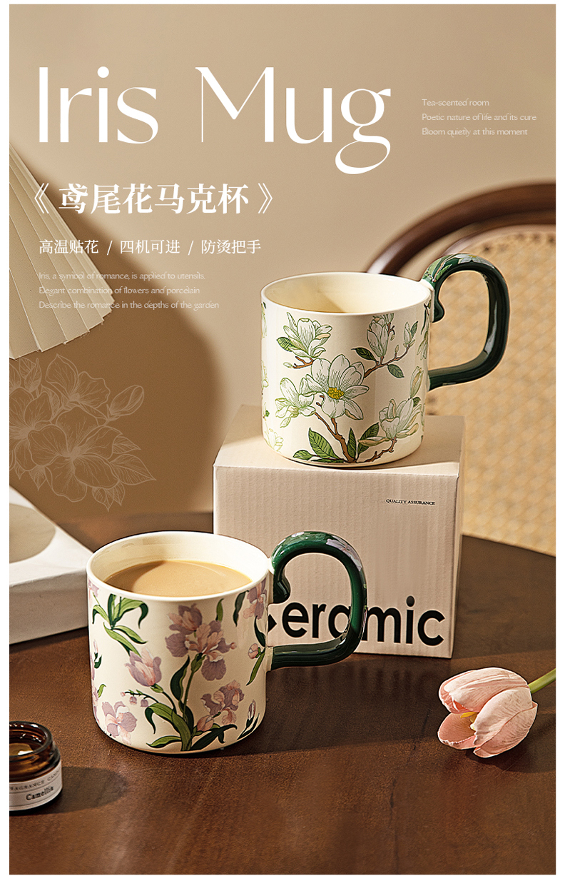摩登主妇鸢尾花陶瓷马克杯高颜值家用喝水杯办公室早餐杯咖啡杯子导购标题