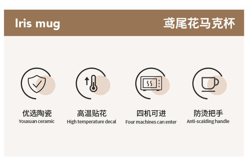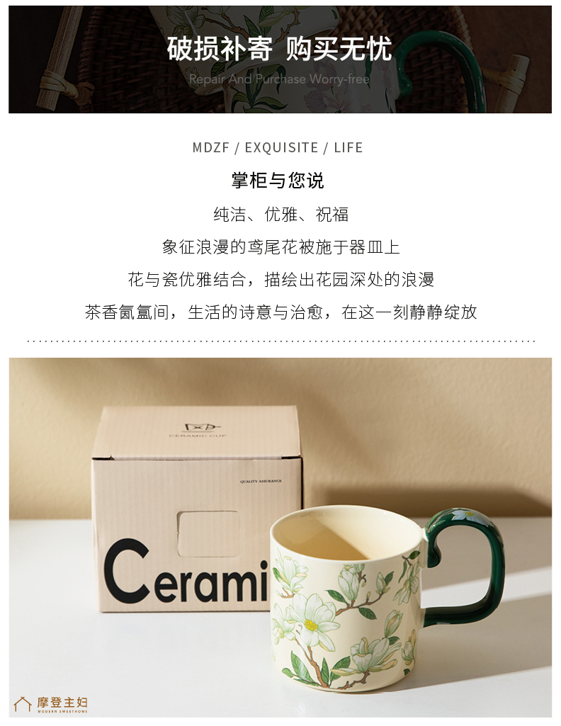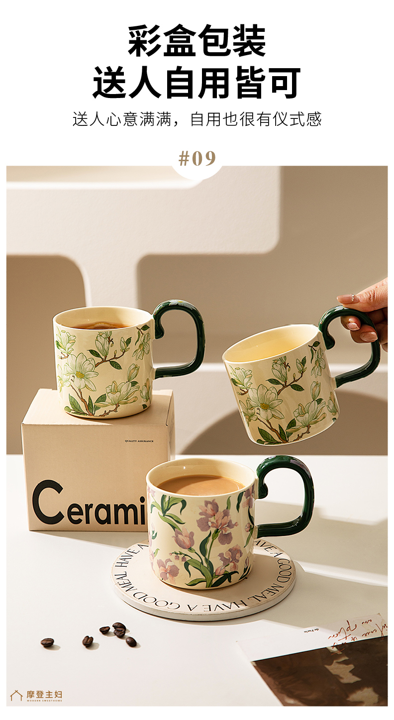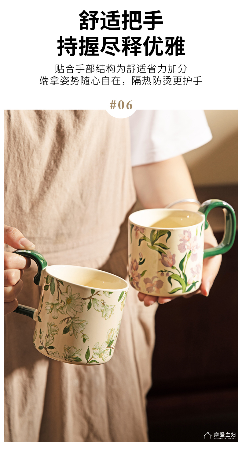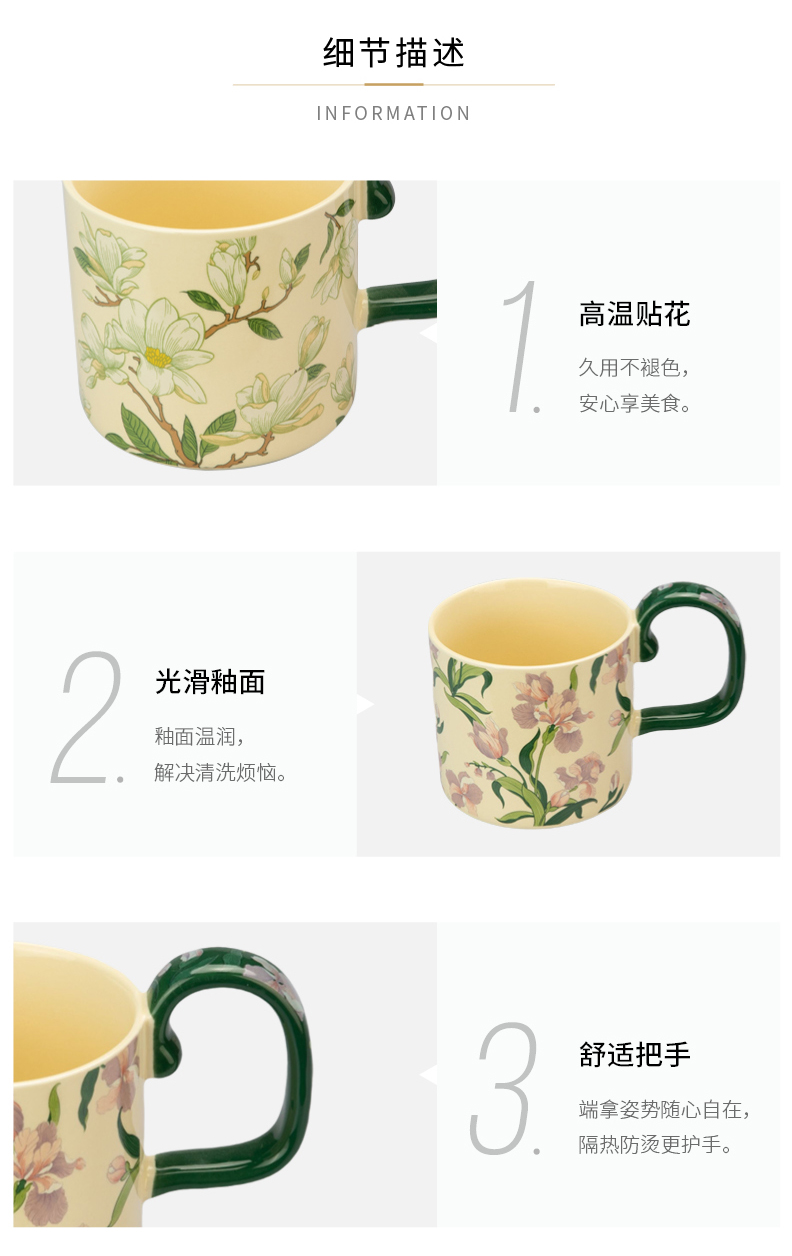 摩登主妇鸢尾花陶瓷马克杯高颜值家用喝水杯办公室早餐杯咖啡杯子导购标题