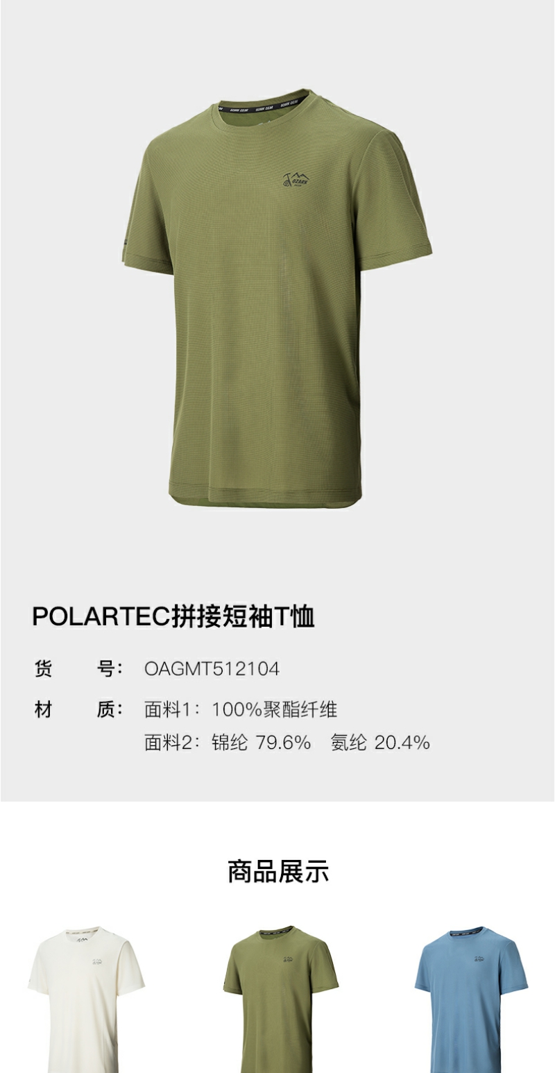 OZARK奥索卡2025春夏新品男户外运动休闲圆领POLARTEC拼接短袖T恤OAGMT512104