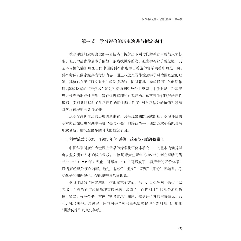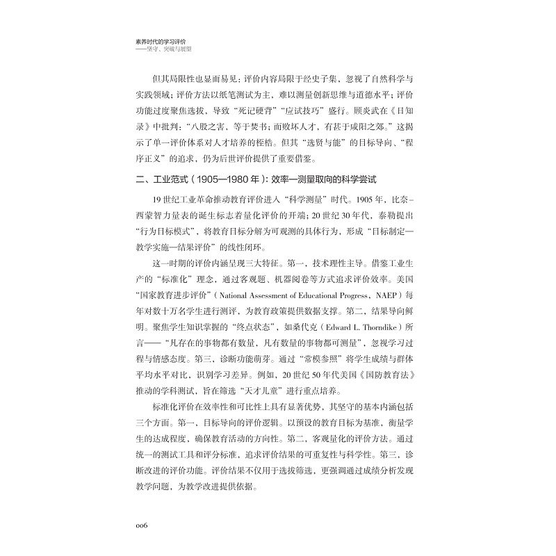 当下全球范围内的教育改革都无一例外转向了素养为本的时代。素养导向的教学改革和学习变革不仅深受认同,也已经在实践中如火如荼的开展,但是,如何开展素养导向的学习评价,各有说法。本书从这个背景出发,清晰阐述了素养时代的学习评价应该坚守什么和应该如何突破。坚守:坚持评价的内涵本质和科学性的实践是无论如何都不能或缺的部分。突破:如何重视、珍视、用好评价的教学导向功能和学习引导功能,非常重要。在坚守的部分,讨论评价何以为评价,在突破的部分,讨论,评价何以为教学、何以为学习。