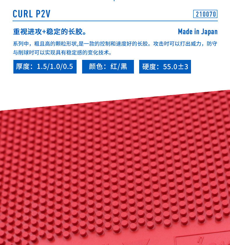 VICTAS维克塔斯长胶套胶P2V长胶胶皮210070进攻型乒乓球长胶胶皮
