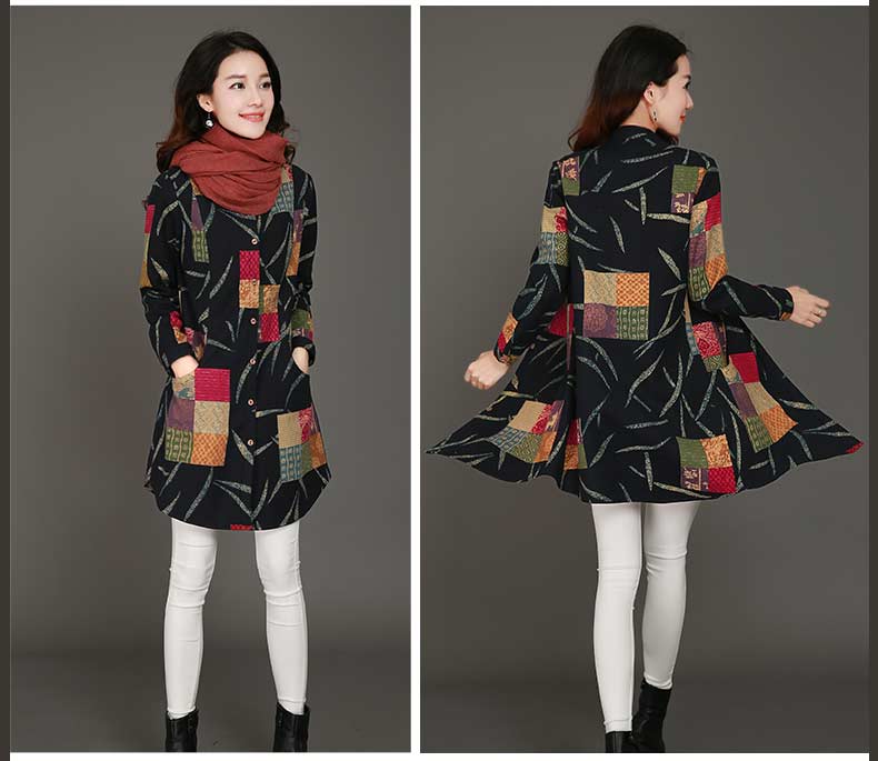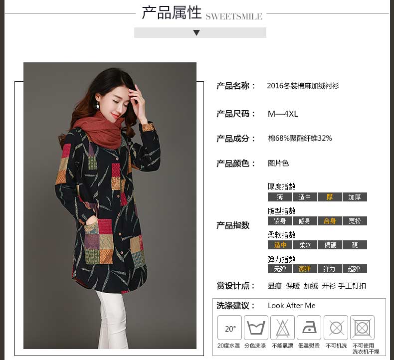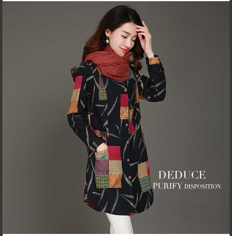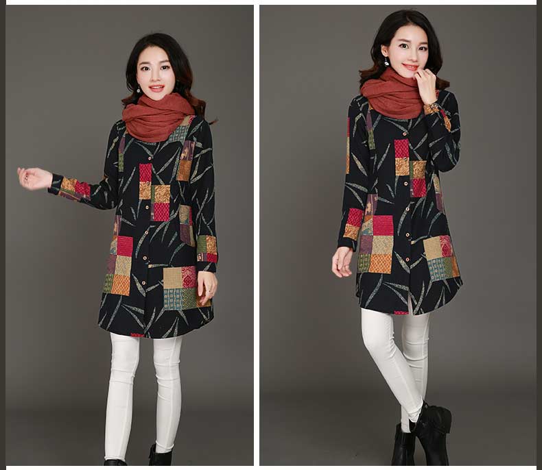 CQ WQ8709 冬季新品几何拼接加绒衬衫