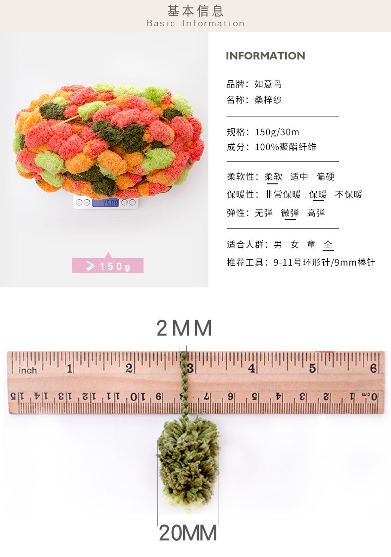 如意鸟 粗毛线桑梓纱 手编毛线坐垫线 球球珍珠线编织座垫
