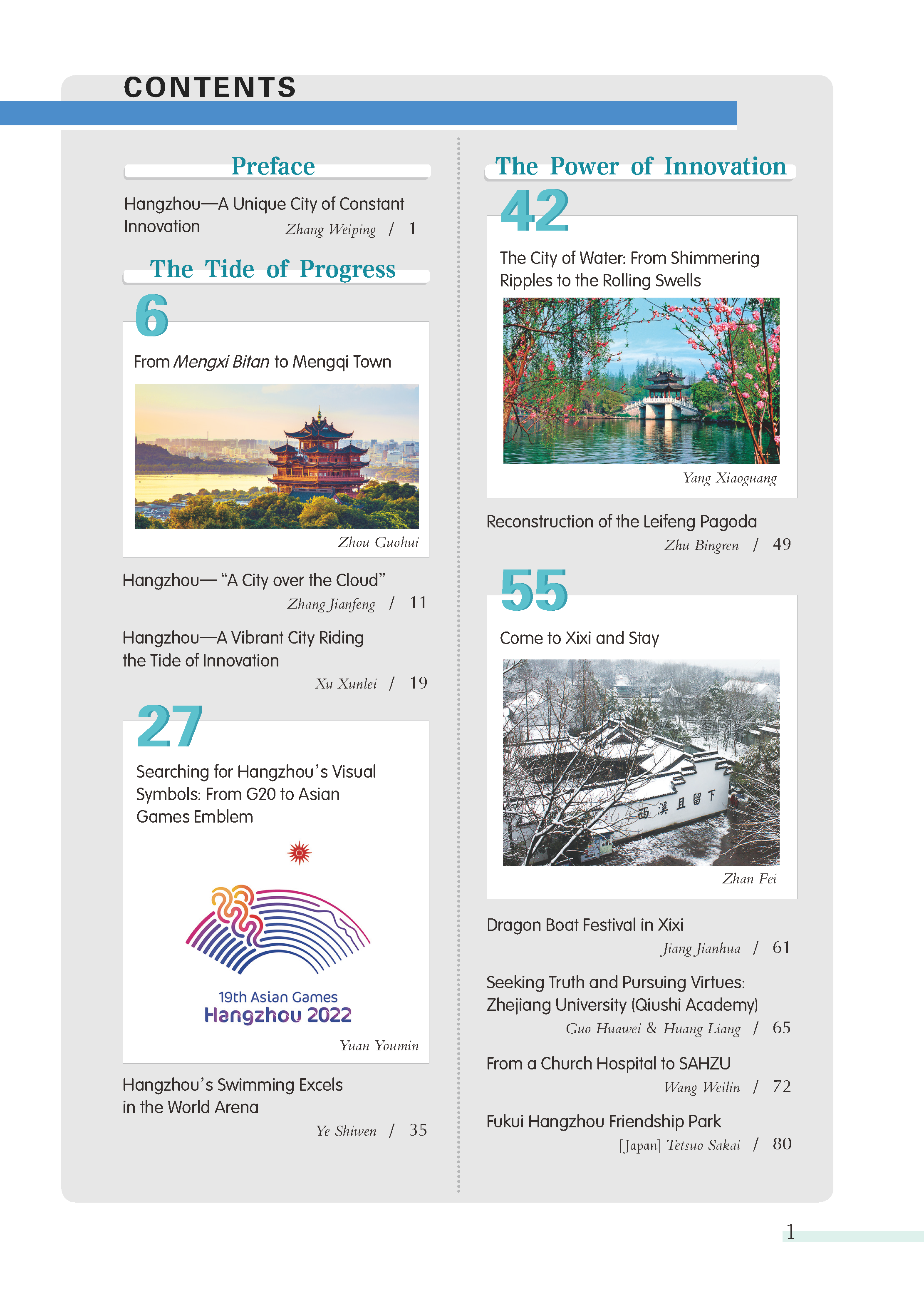 本书特别展示中国特色社会主义在浙江的实践及创新成果,突出改革开放四十多年来的成就,在浙江高质量发展建设共同富裕示范区当下,让读者了解杭州深厚的文化底蕴,体验杭州的创新魅力。同时,书中的新老照片、高清视频,全景式地展现了杭州的文化根脉,让读者以视觉、听觉等多元化方式切实领略杭州韵味、感悟杭州文化,展示杭州魅力,更好地推广中国文化,讲好中国故事,促进中西文化交流。