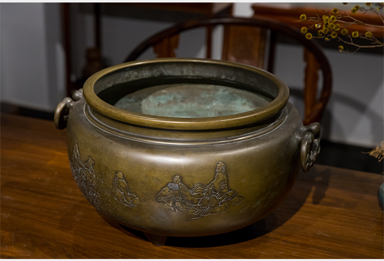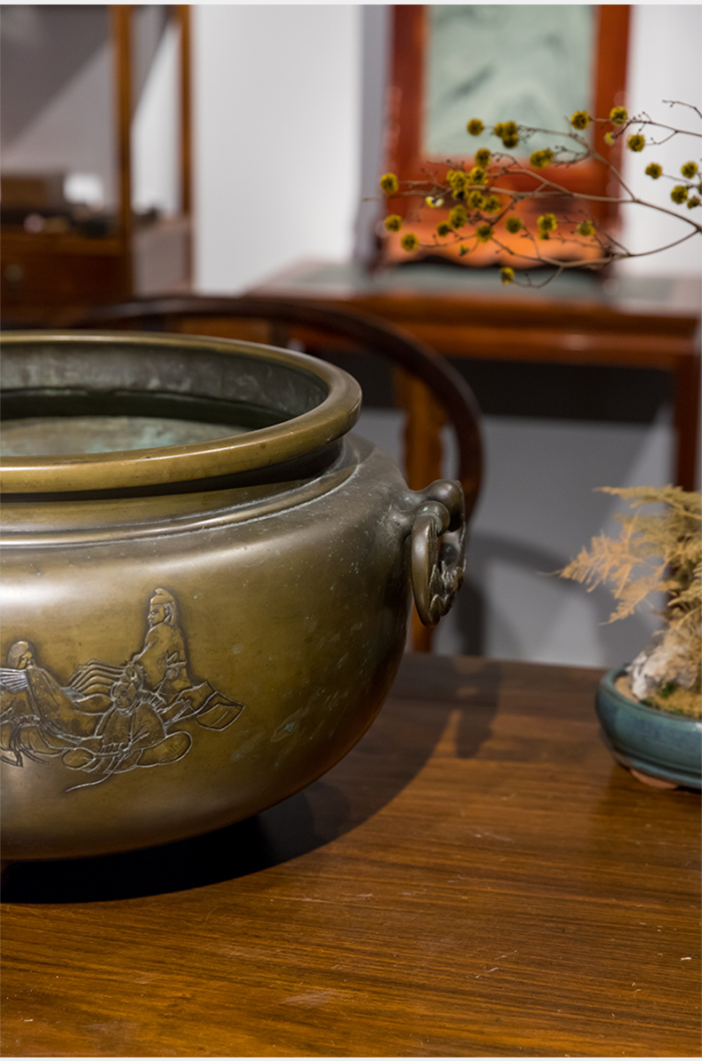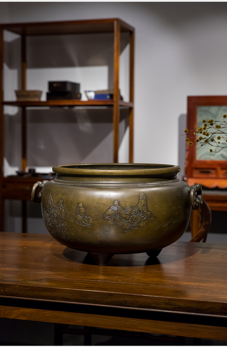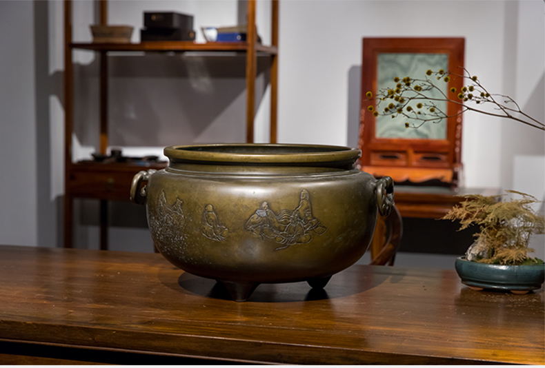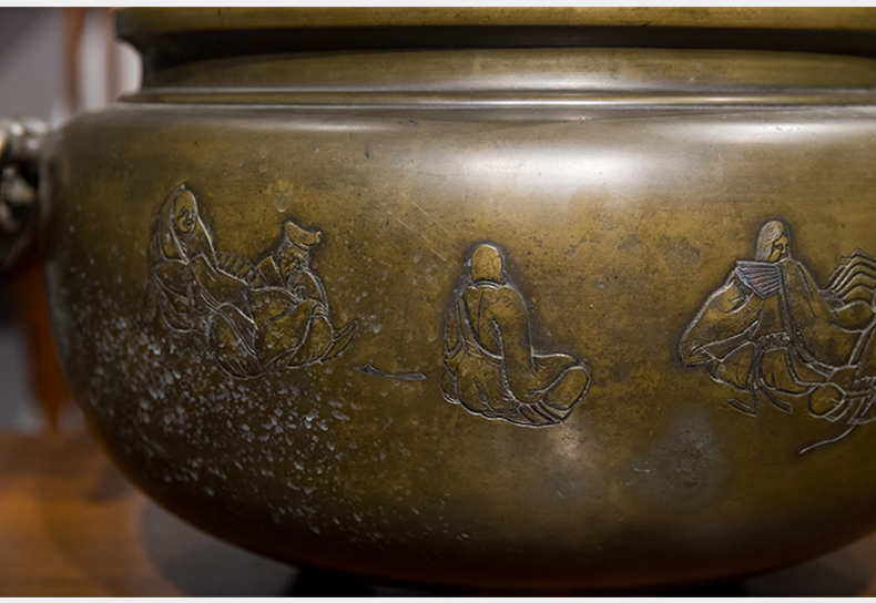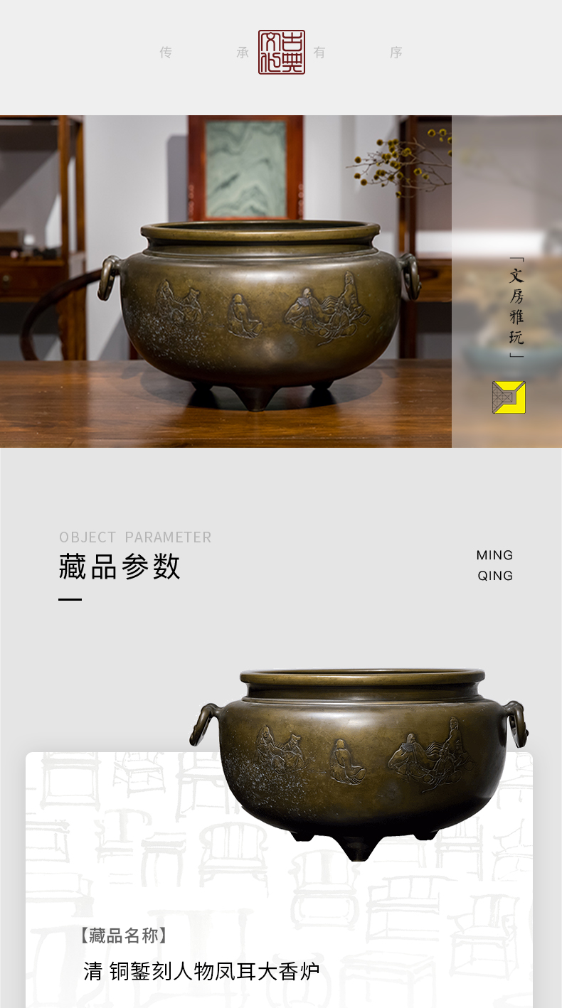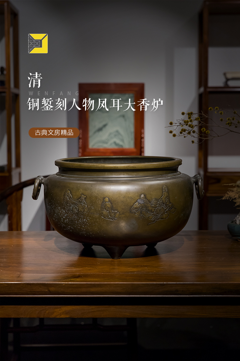清 铜錾刻人物凤耳大香炉