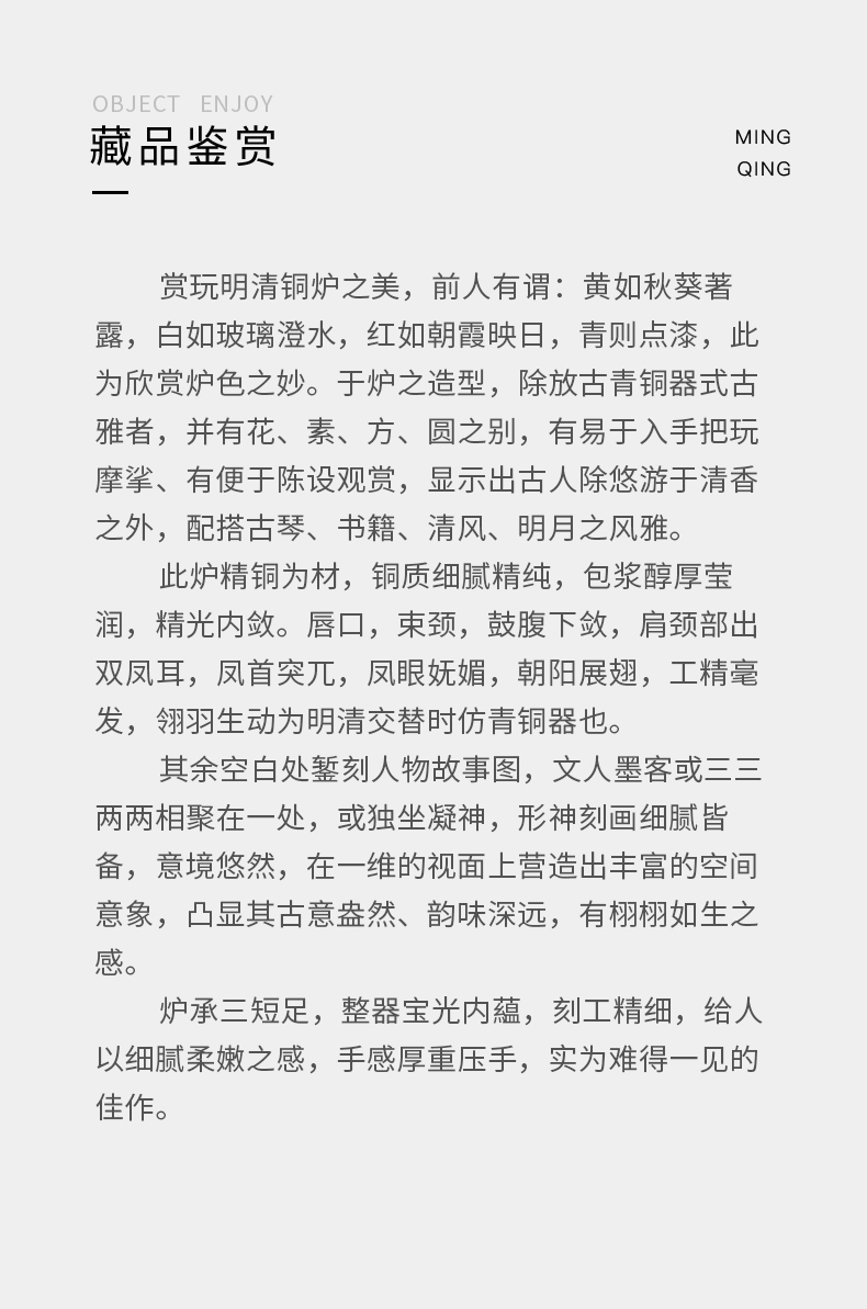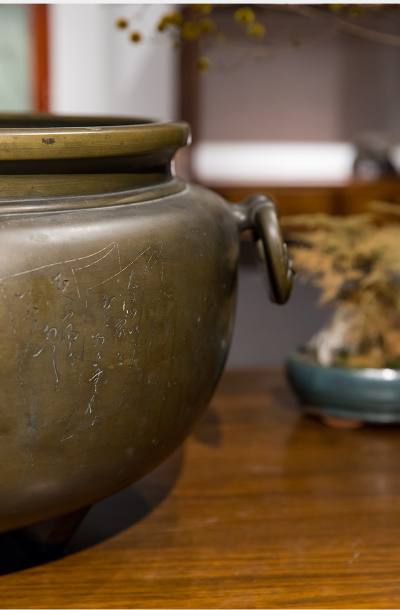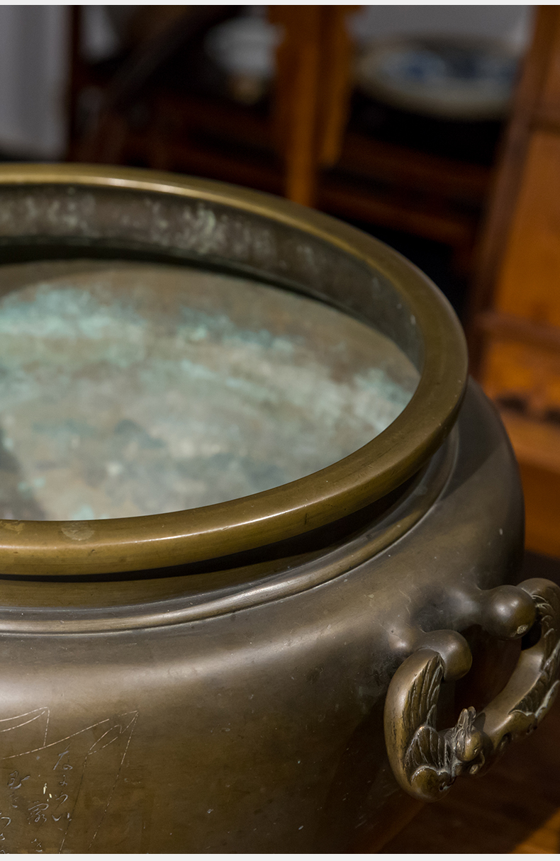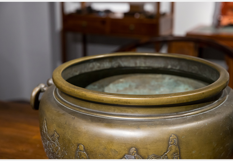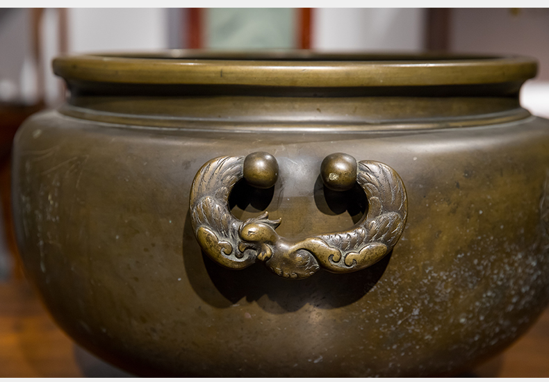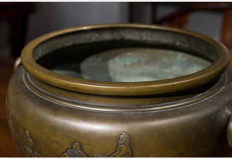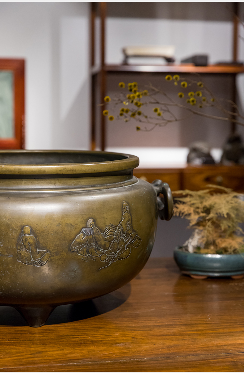 清 铜錾刻人物凤耳大香炉