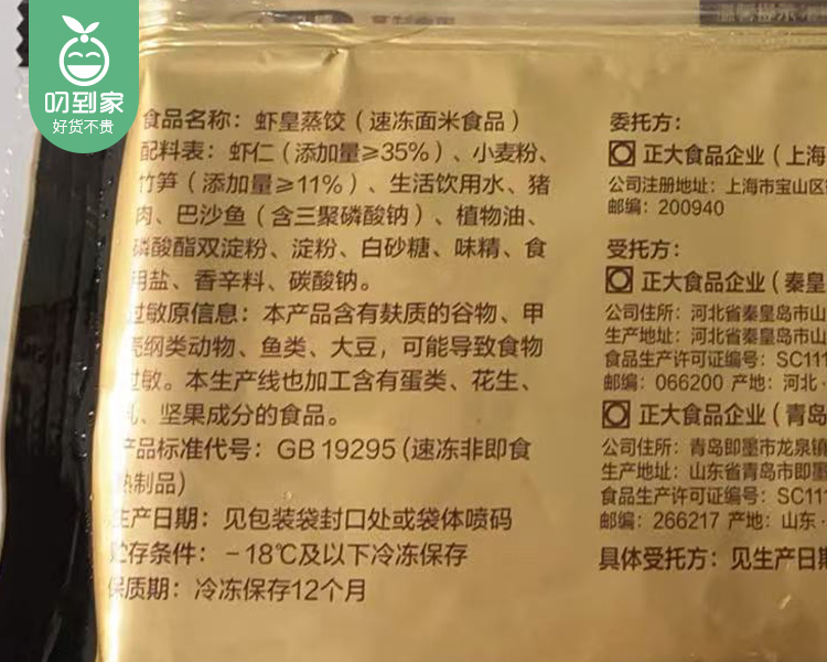 【预售-12月22日配送】【第2份半价】正大食品正大极膳虾皇蒸饺/1包(10只,共230g)生产日期:25年8月