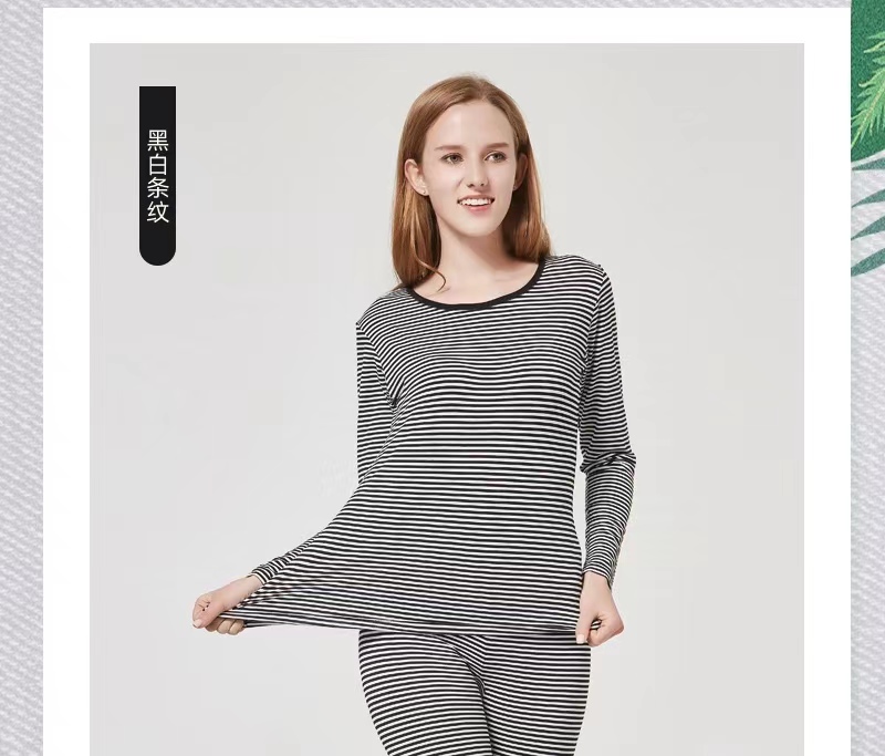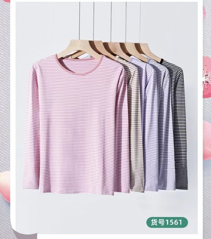 【品名】LS竹纤维女士圆领细条纹长袖1561