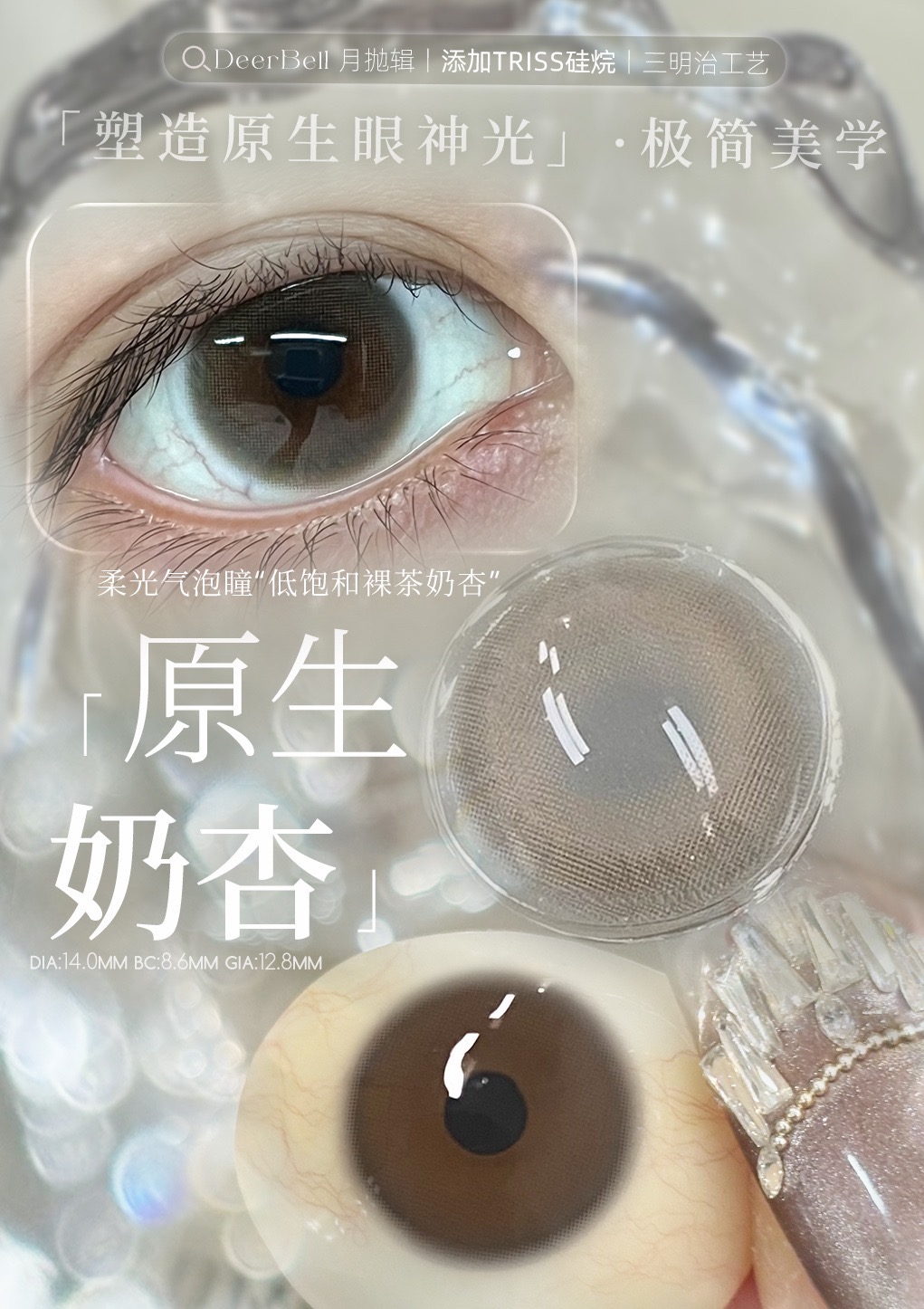 Deerbell月抛隐形眼镜 原生奶杏/泡泡奶棕//泡泡奶灰    1副/2片 商品图0