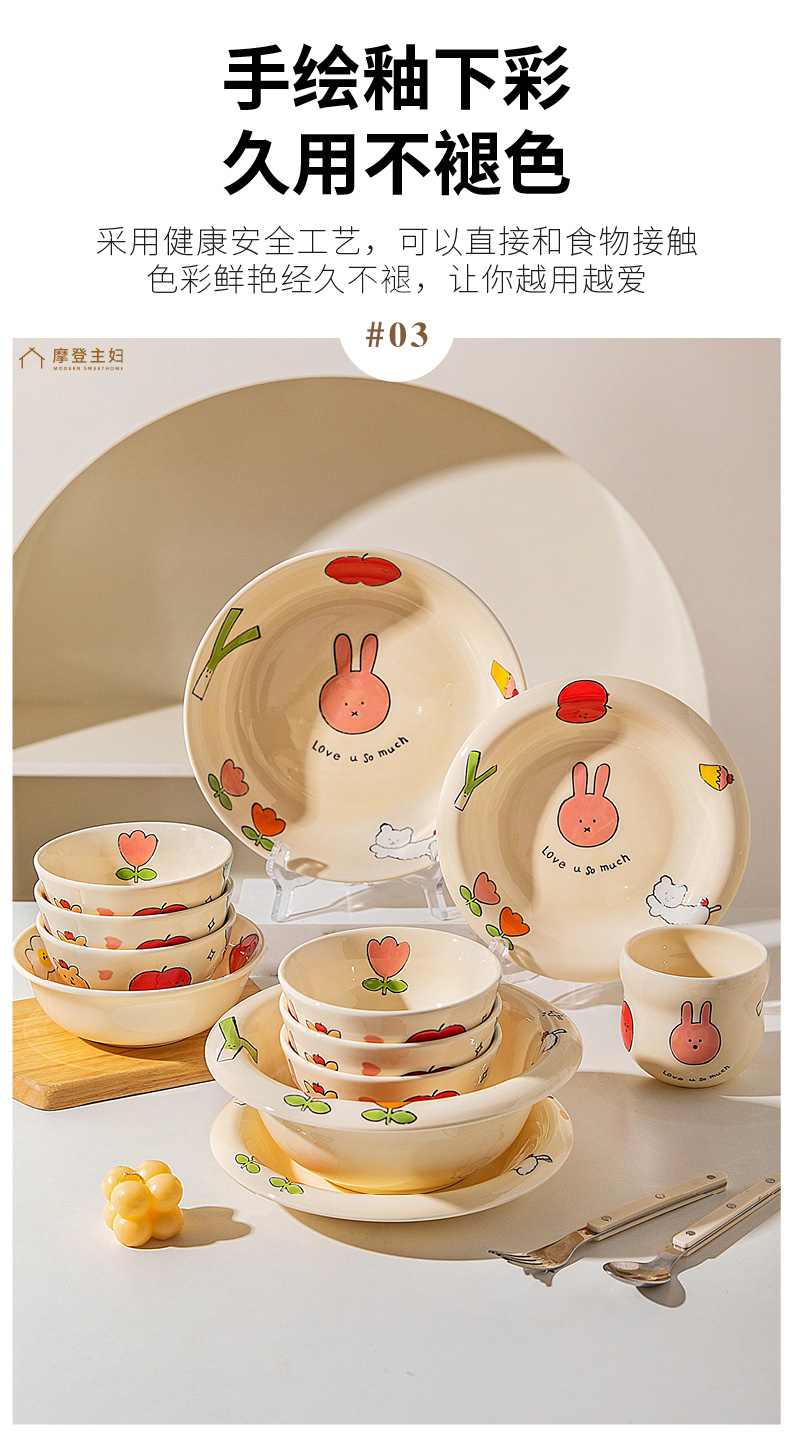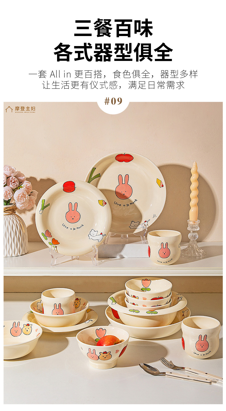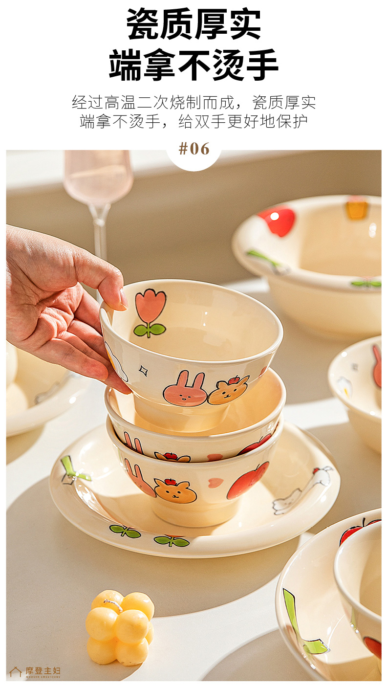 摩登主妇可爱餐具陶瓷饭碗家用2025新款一人食碗具漂亮盘子汤面碗