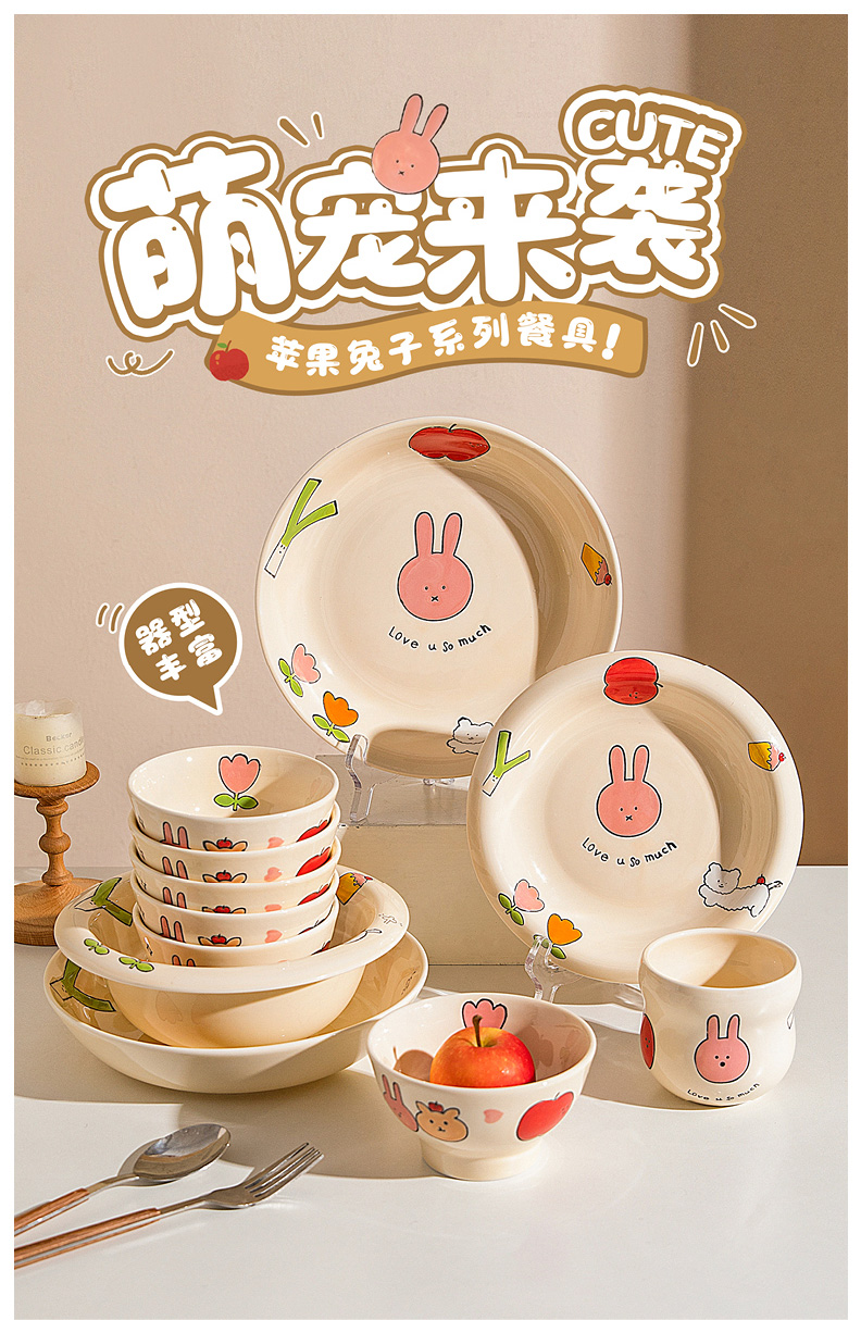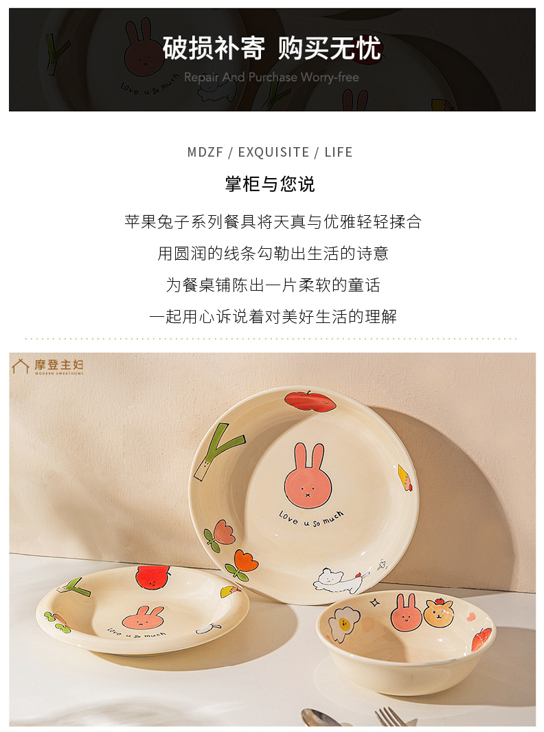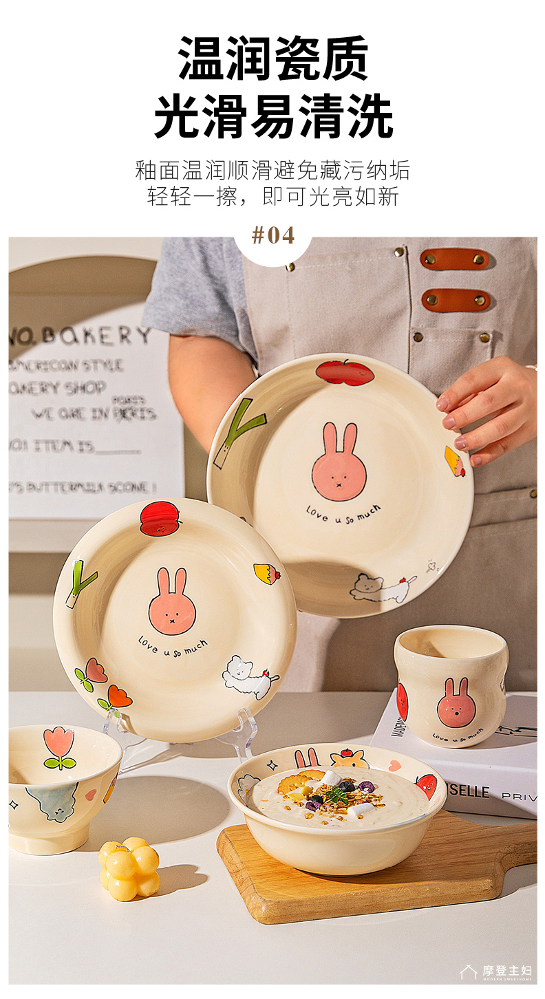 摩登主妇可爱餐具陶瓷饭碗家用2025新款一人食碗具漂亮盘子汤面碗