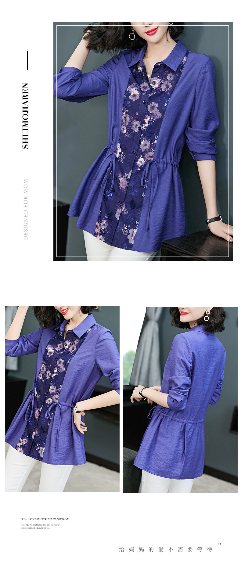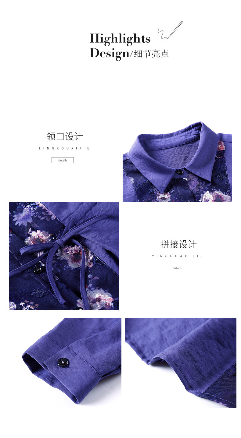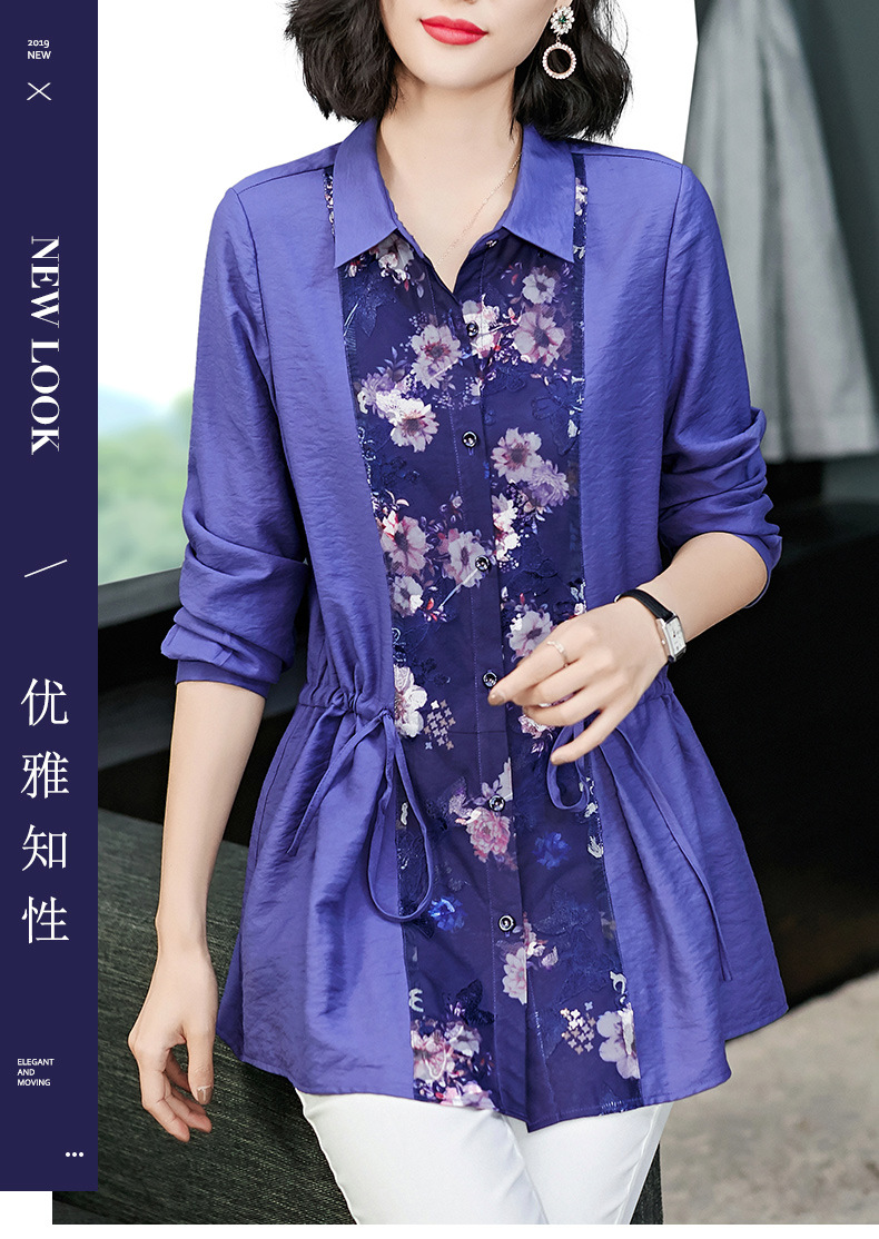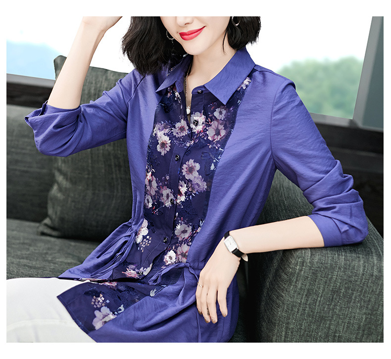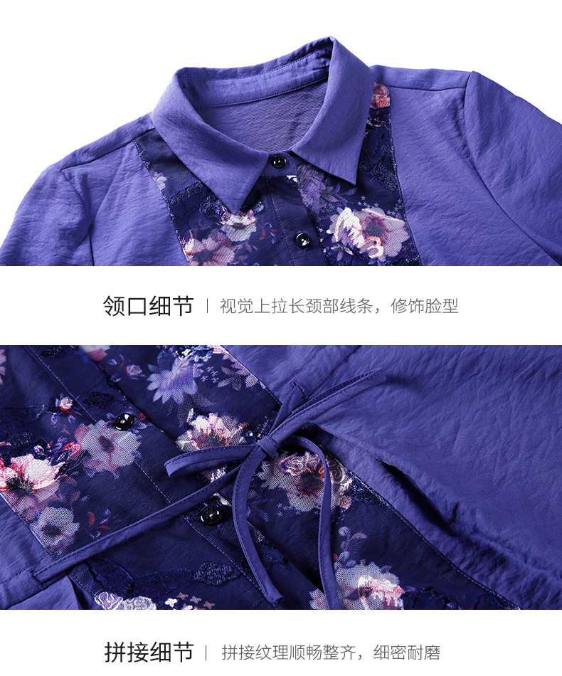 SMJR-2196360新款气质长袖衬衣上衣中年蕾丝拼接衬衫