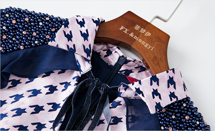 FMY-25997秋季新款衬衣领撞色裙荷叶边长袖显瘦a字裙