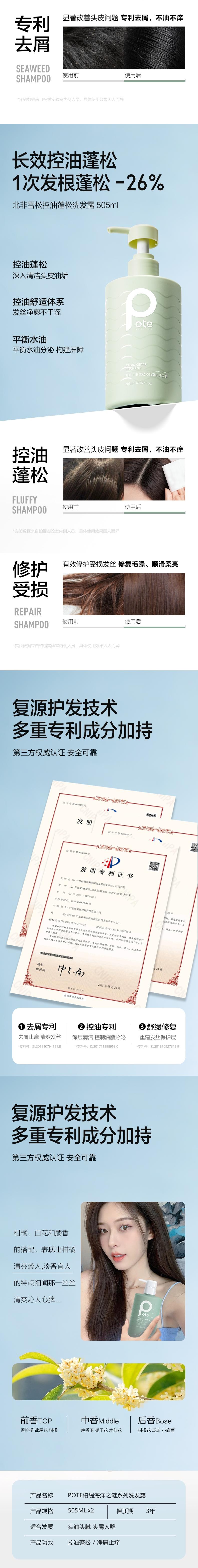 柏缇 北非雪松控油蓬松洗发露+海藻去屑止痒洗发露(瓶)505ml*2 4897054947193-2