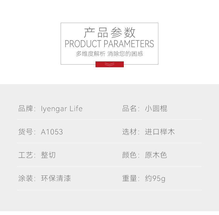 艾扬格life A1053榉木小圆直棍瑜伽辅具 老师瑜伽教棍