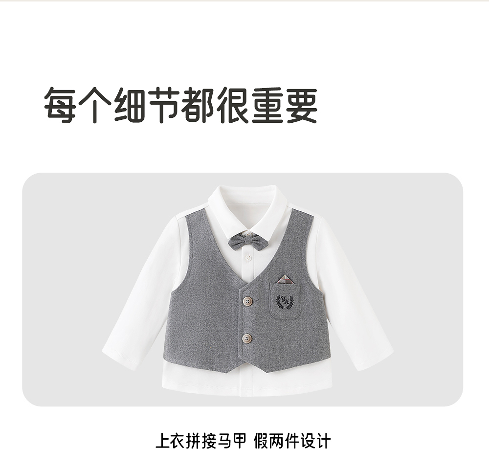 【商场同款】英氏儿童套装小宝宝礼服套装长袖男童西服纯棉新款
