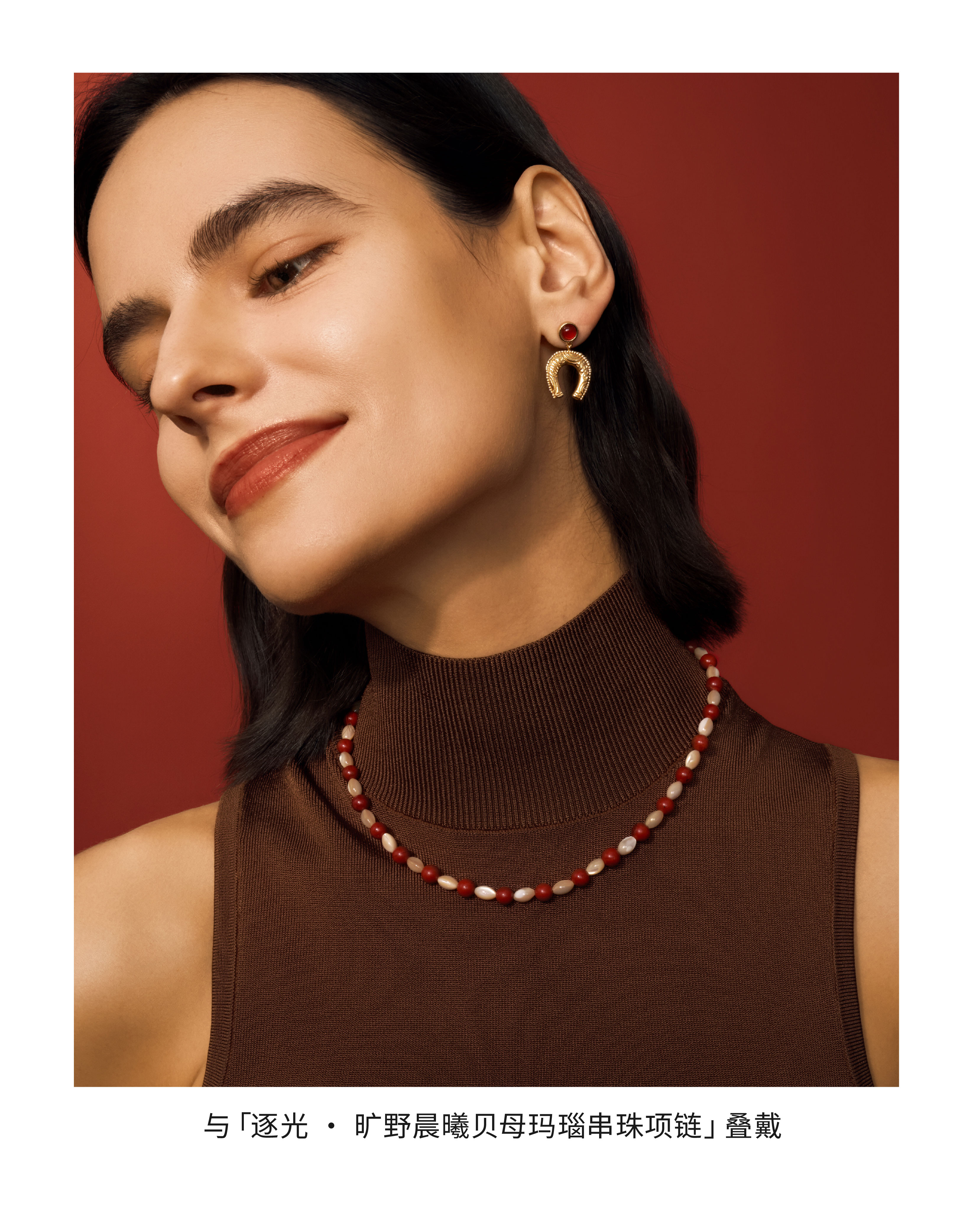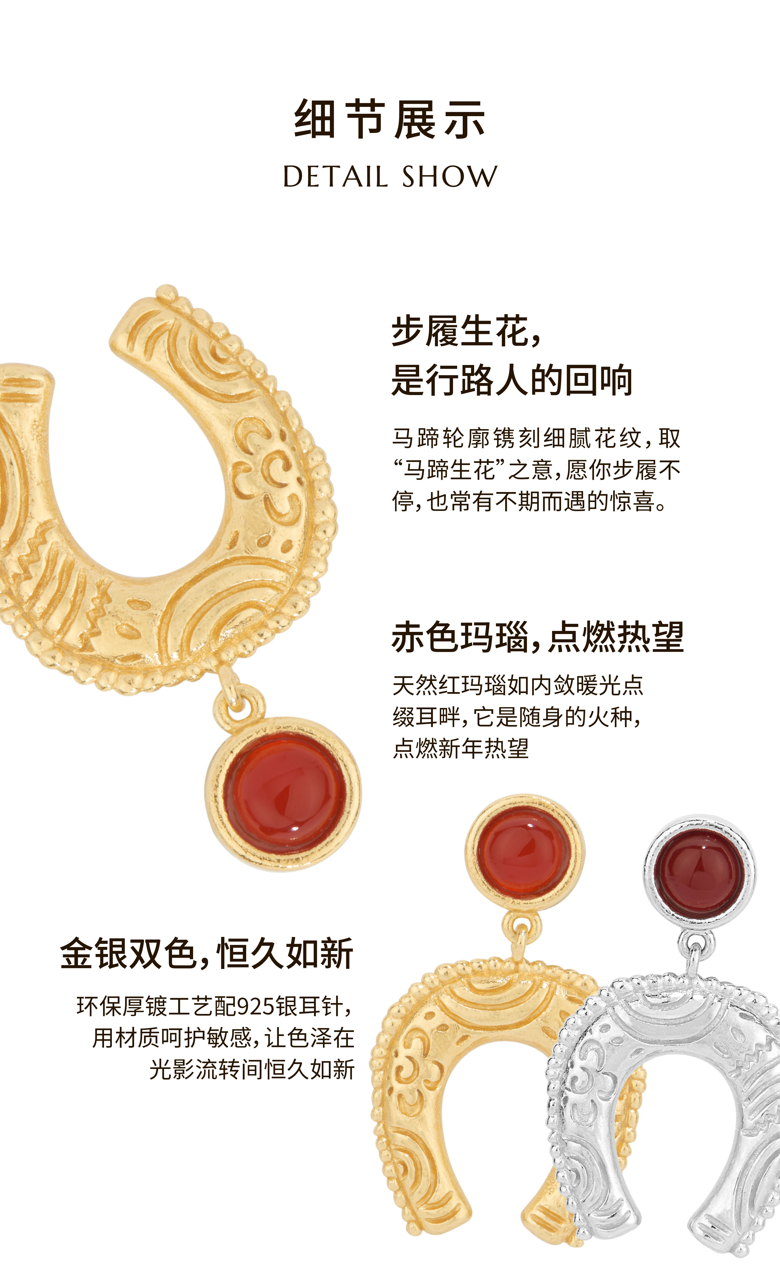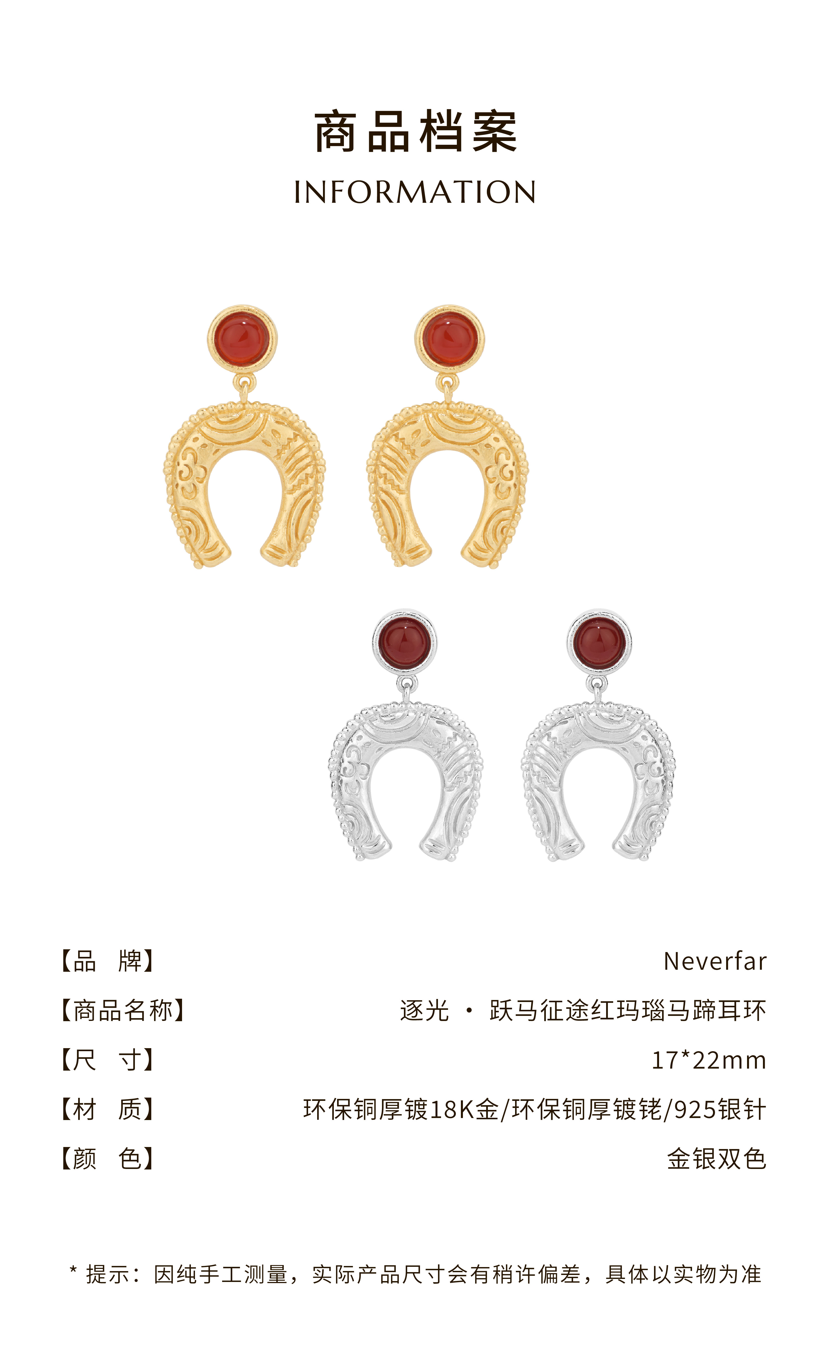 Neverfar 跃马逐光系列跃马征途红玛瑙马蹄耳环
