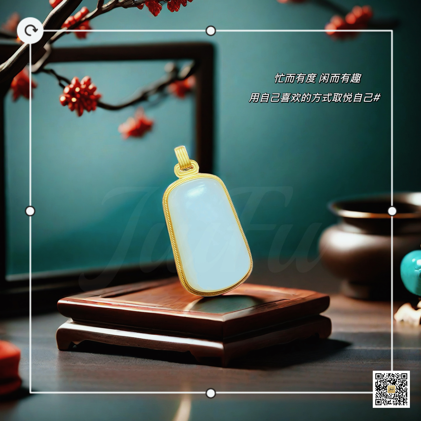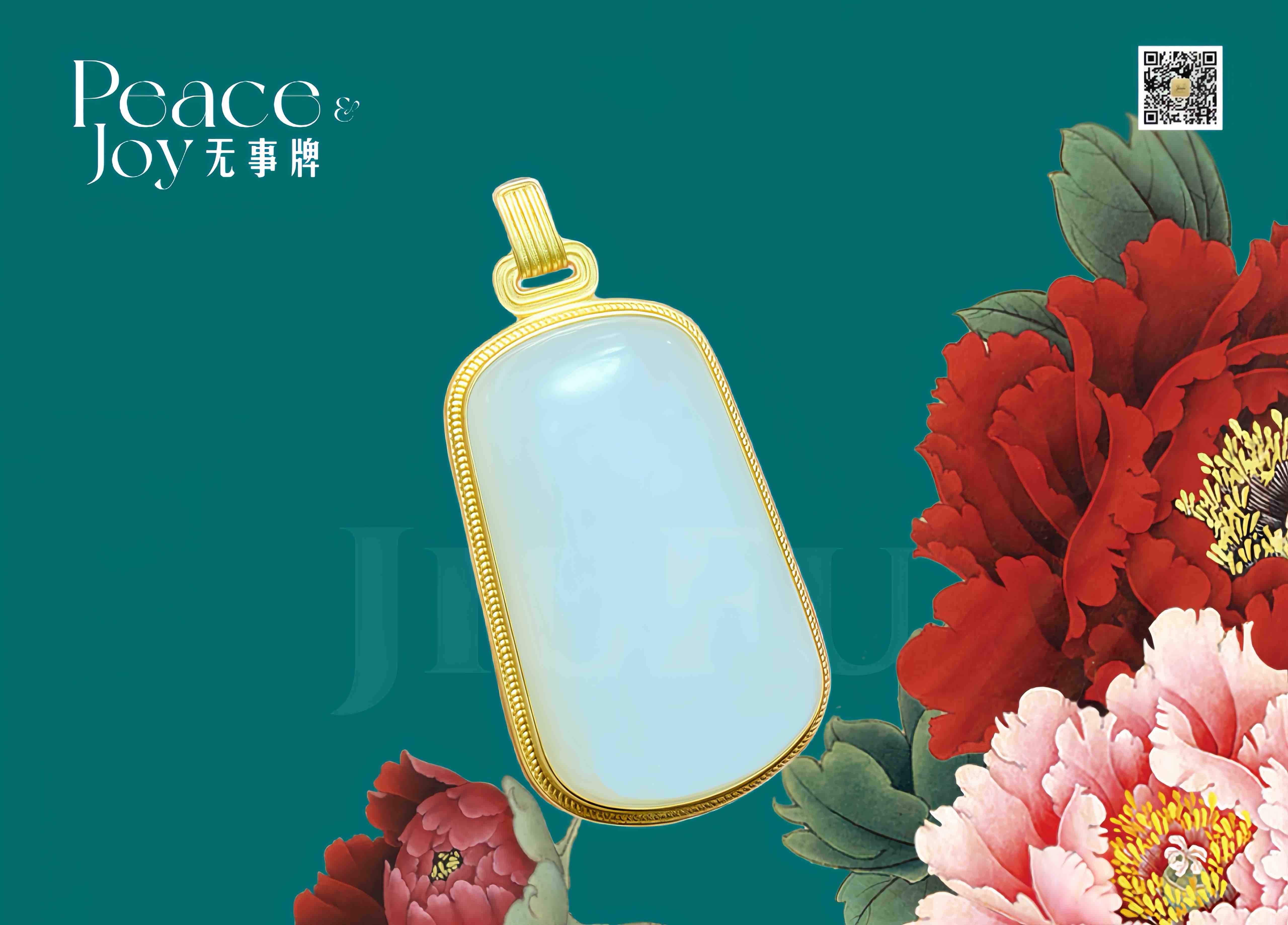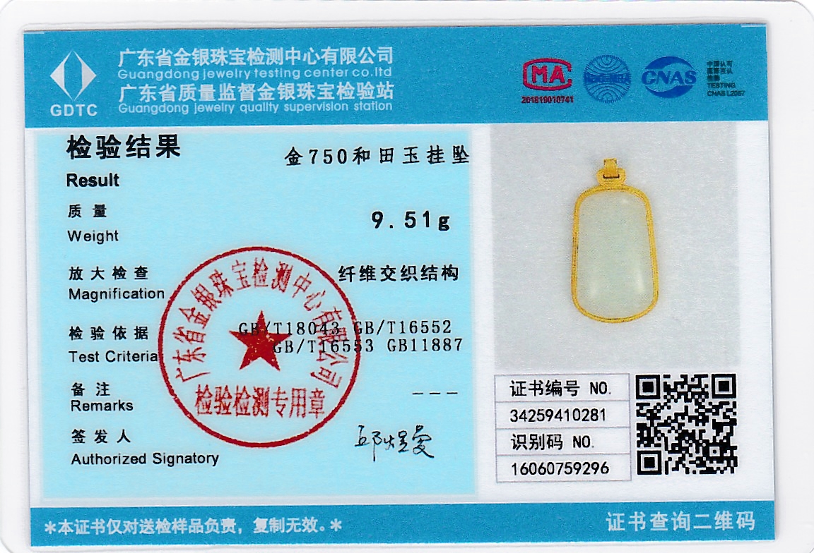 18k古法黄金和田玉(白玉)吊坠