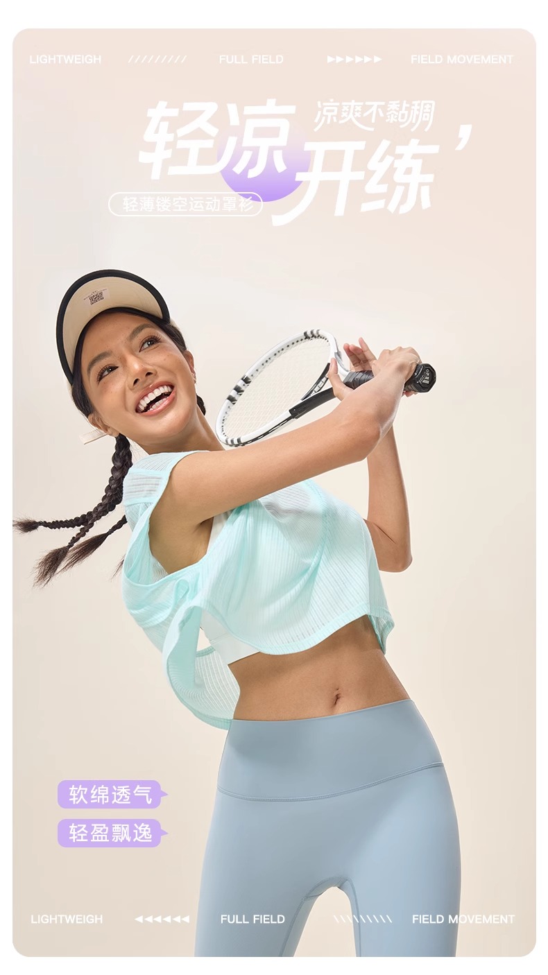 跃牌【欲动春风】系列 夏季瑜伽罩衫女镂空透气无袖上衣42160