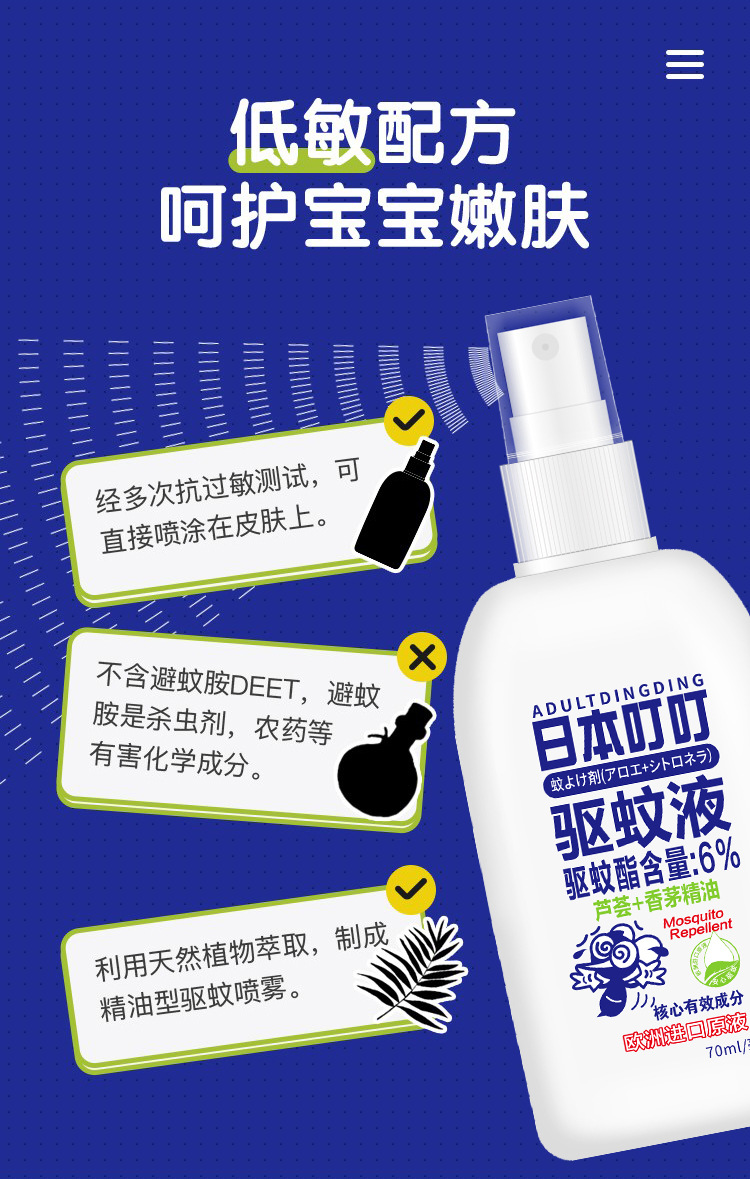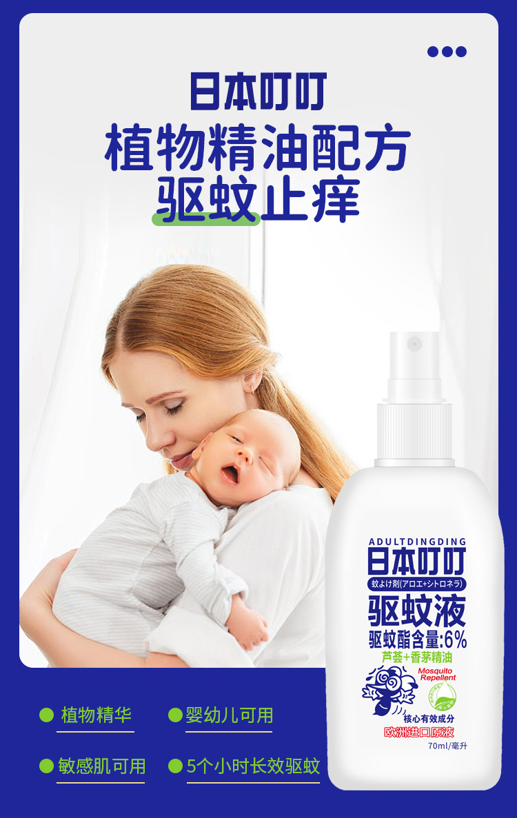 【蚊虫克星】日本叮叮植物驱蚊水 天然植物婴幼儿配方 长效驱蚊 含芦荟+香茅精油成分 70ml/瓶