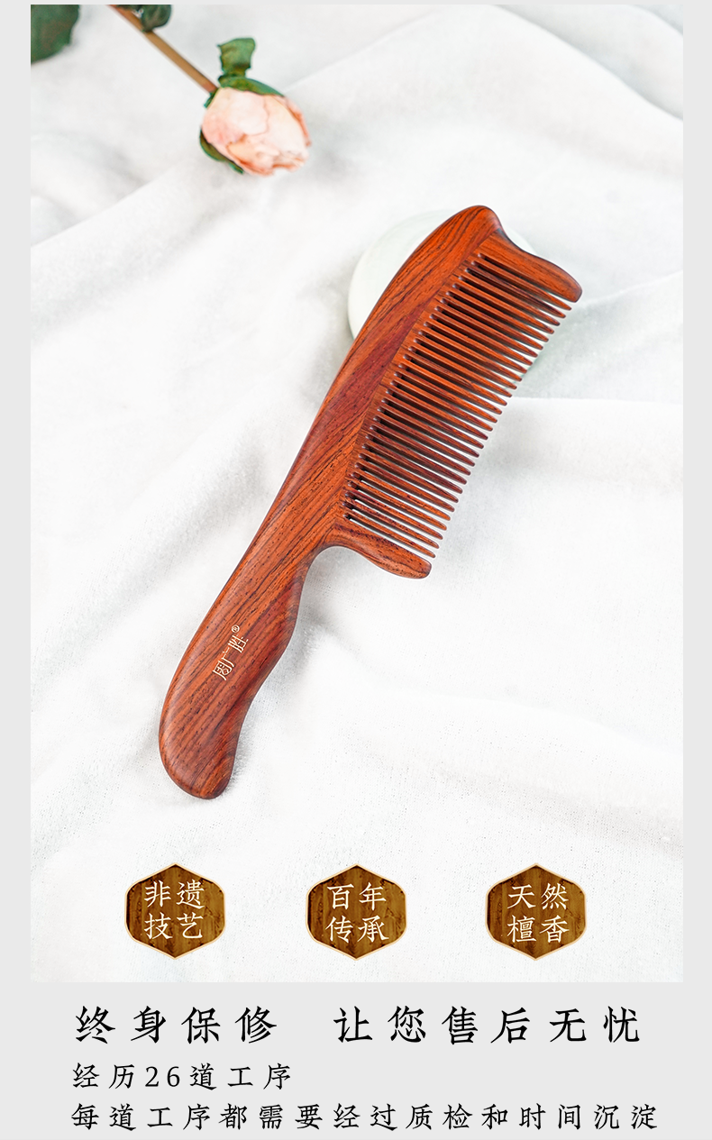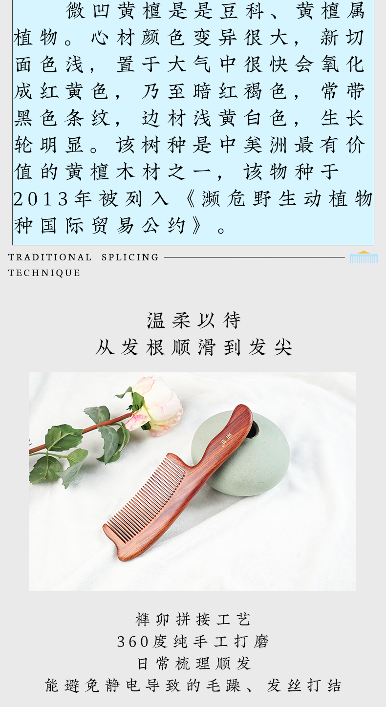 周广胜正品南美酸枝竹影描金插齿木梳防静电护发顺发男女士礼盒装