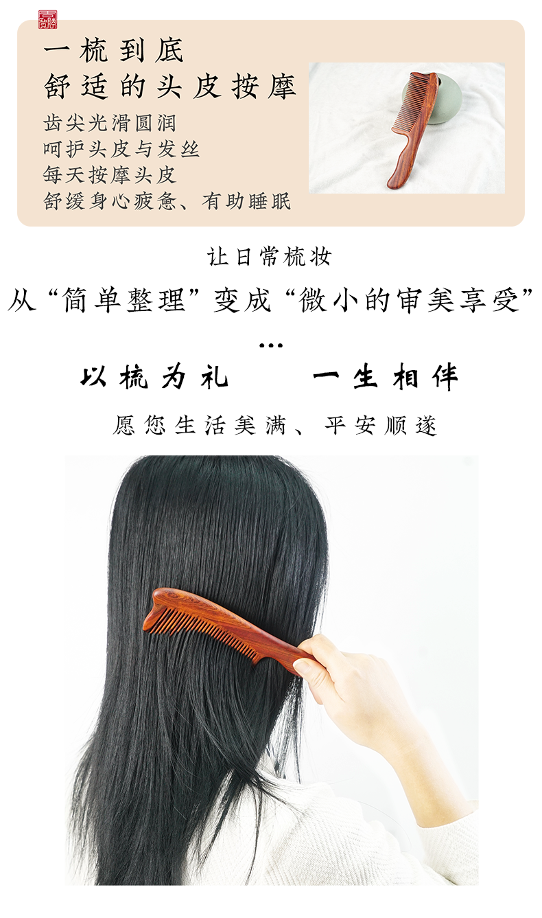 周广胜天然木材雕花合木梳雅纹男士女士家用护发顺发按摩梳礼盒