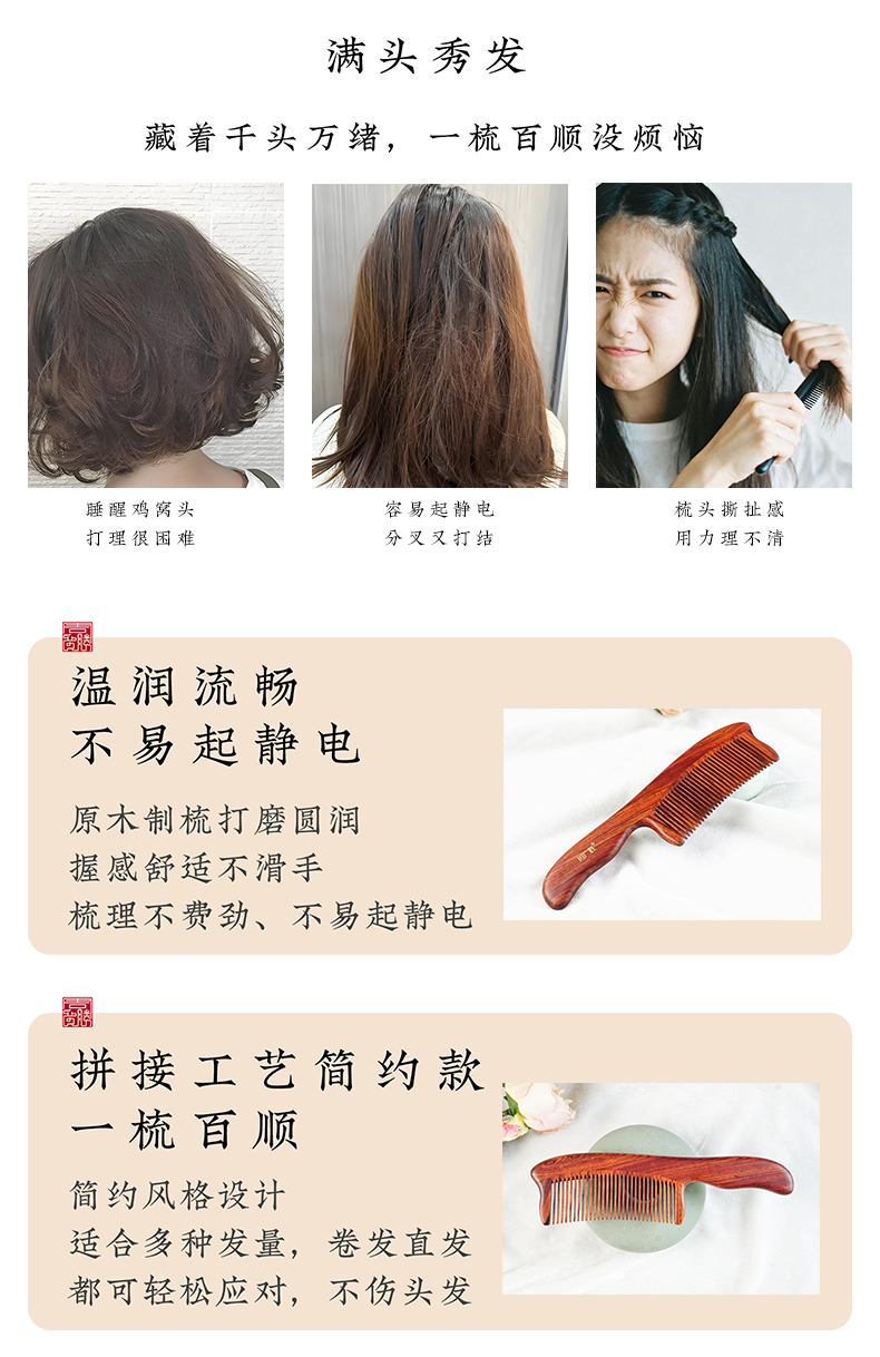 周广胜精选红檀香龙猫按摩梳防静电顺发护发便携家用送女友送亲友
