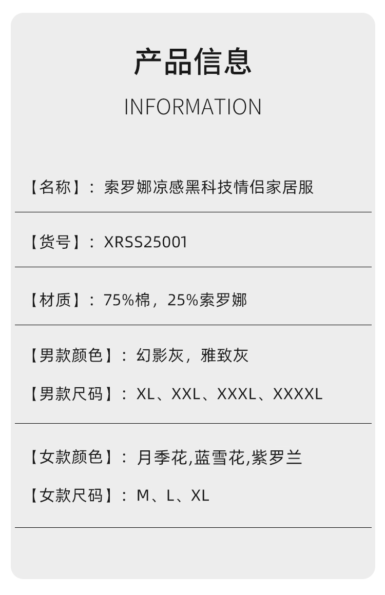 索罗娜凉感家居服套装,杜邦索罗娜凉感面料,不闷热、不黏腻