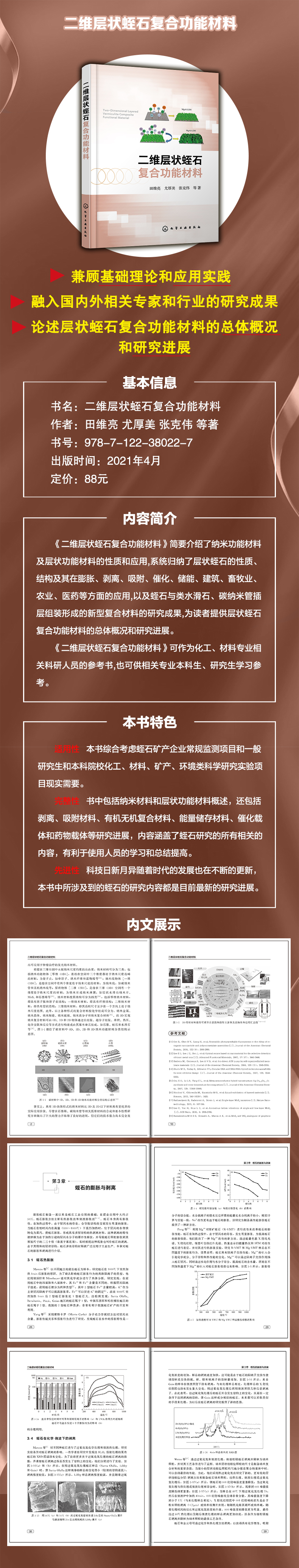二维层状蛭石复合功能材料,全面介绍蛭石材料在吸附、催化、储能、建筑等领域应用的专著 |