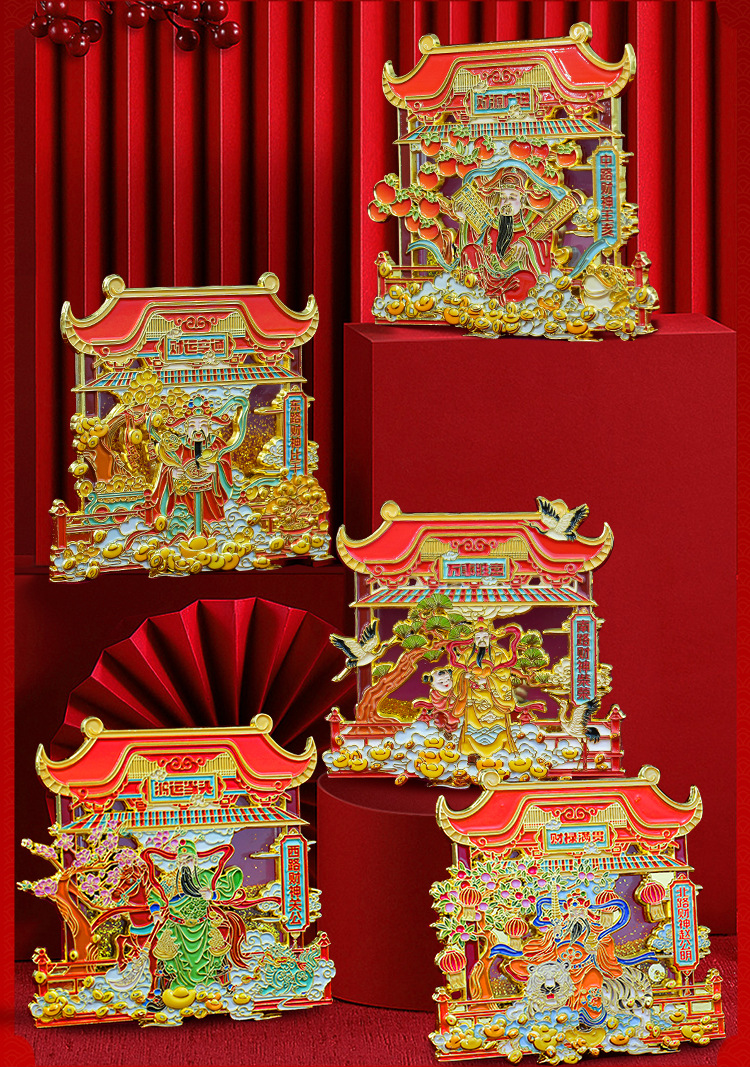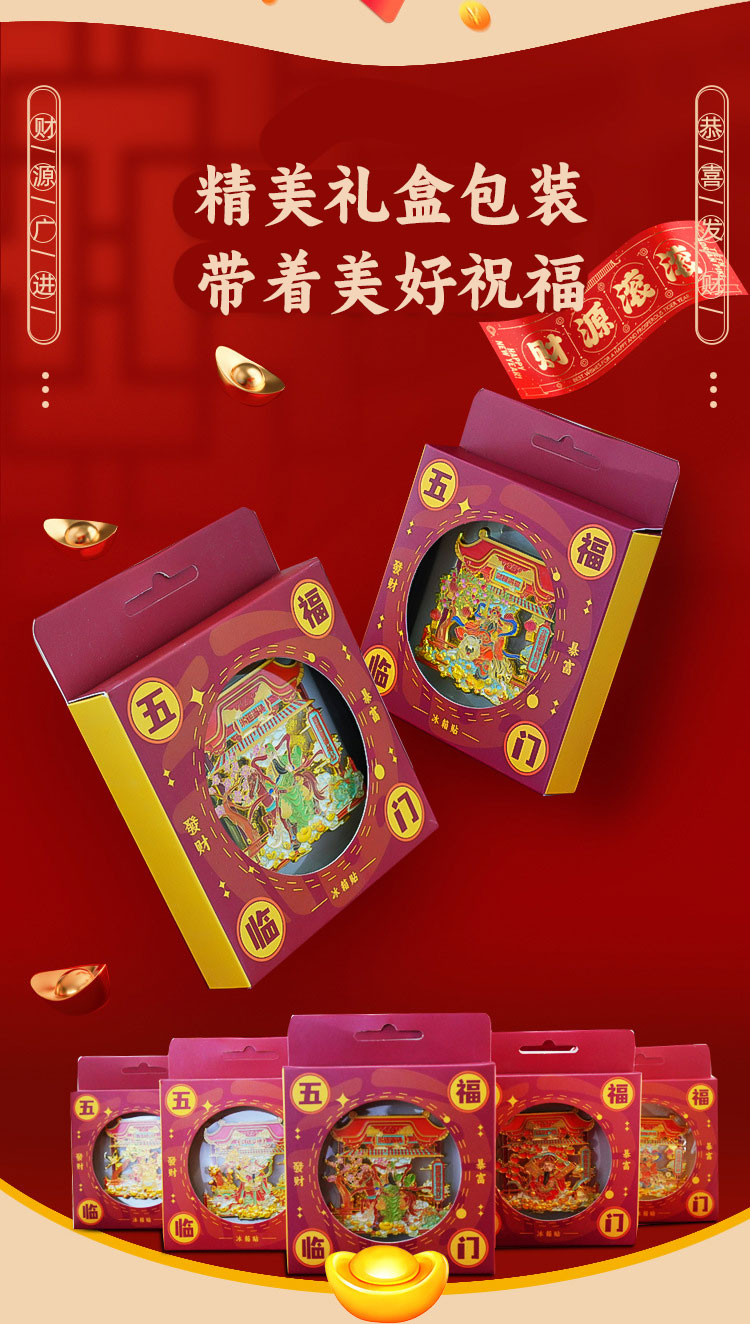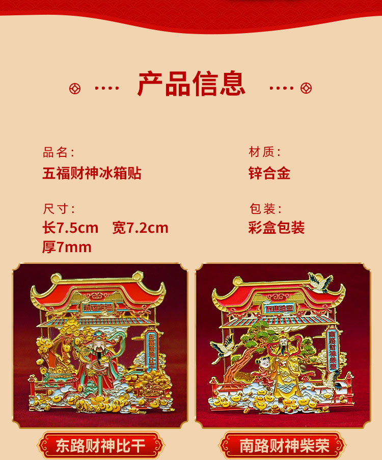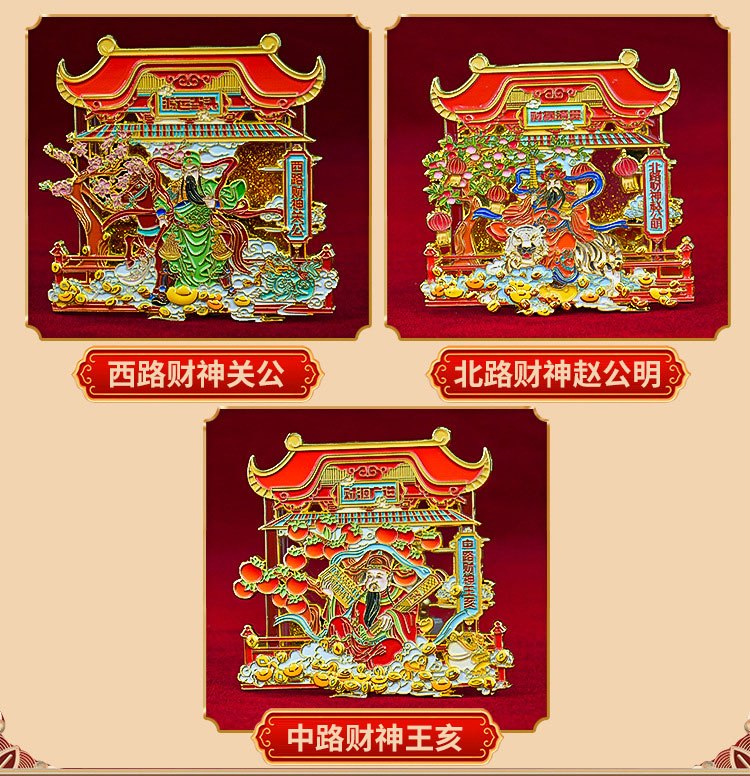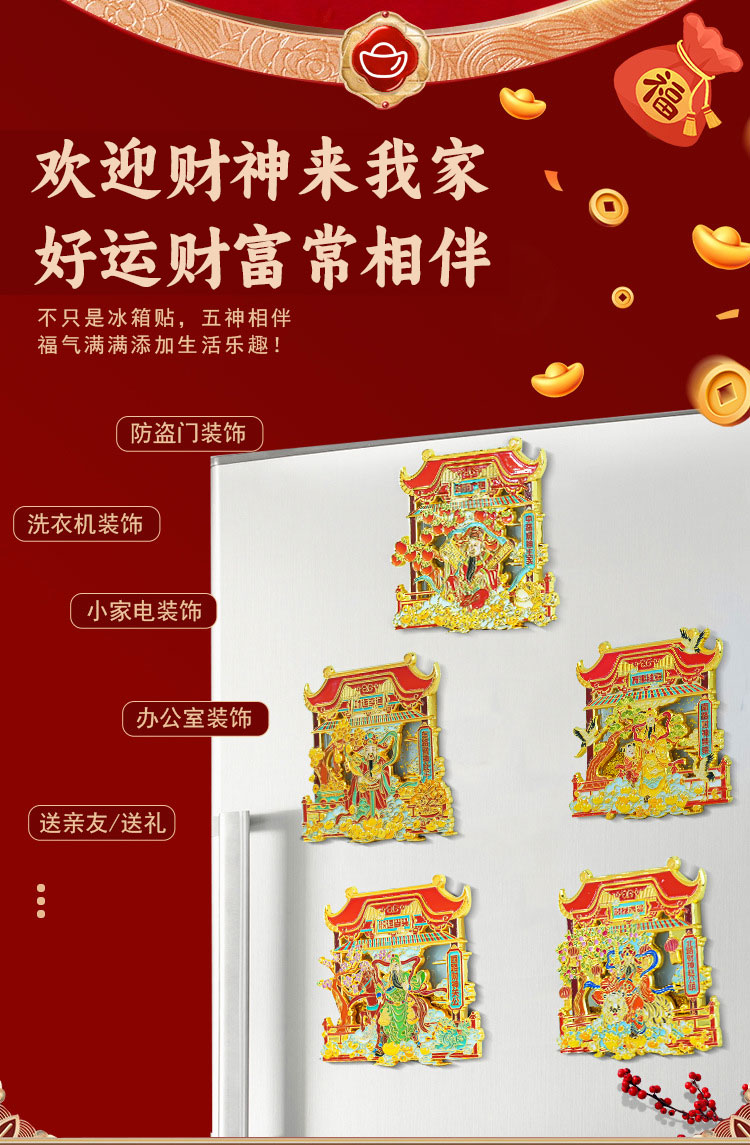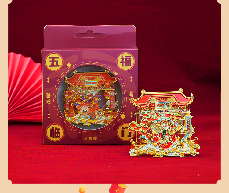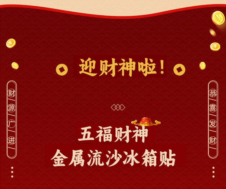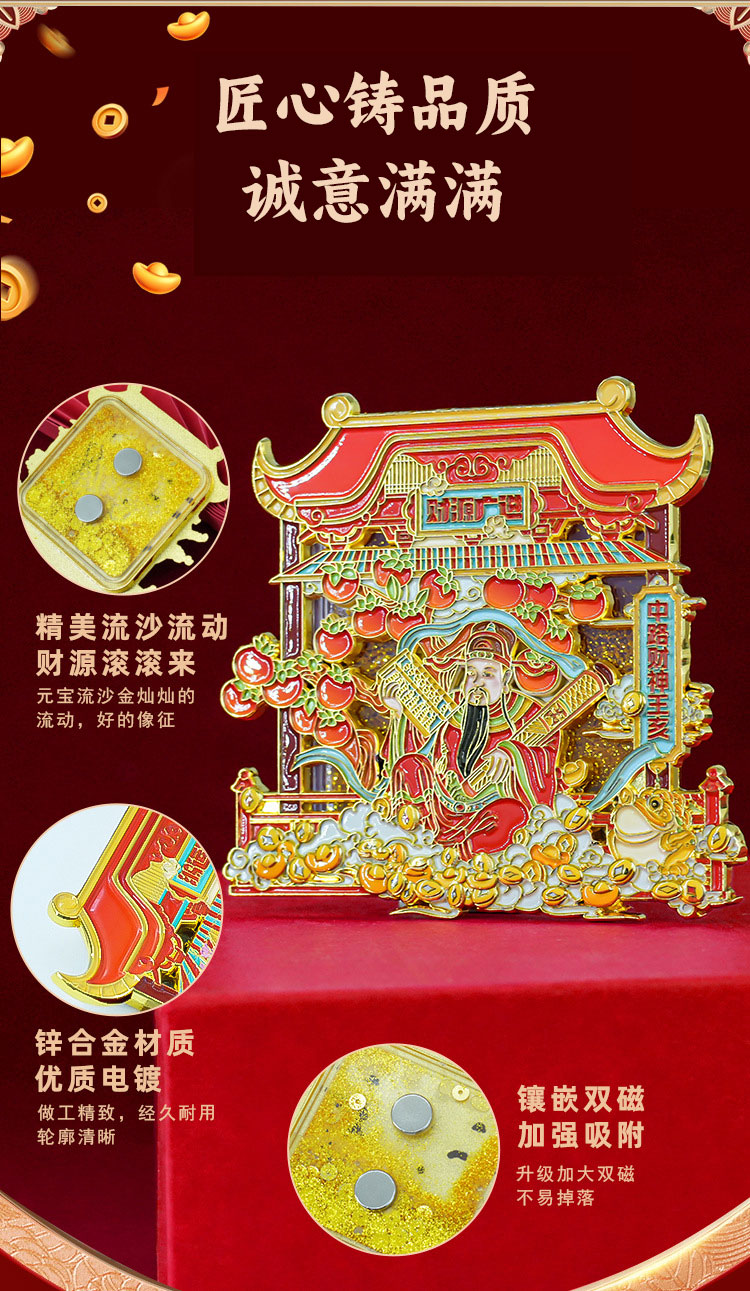 【财神爷金属流沙冰箱贴】中国风磁贴新款装饰磁吸纪念品流沙冰箱贴