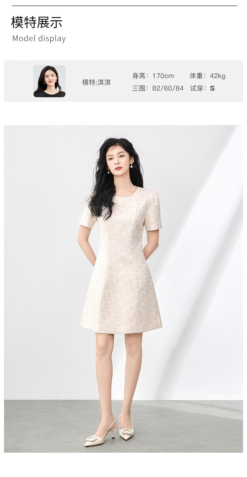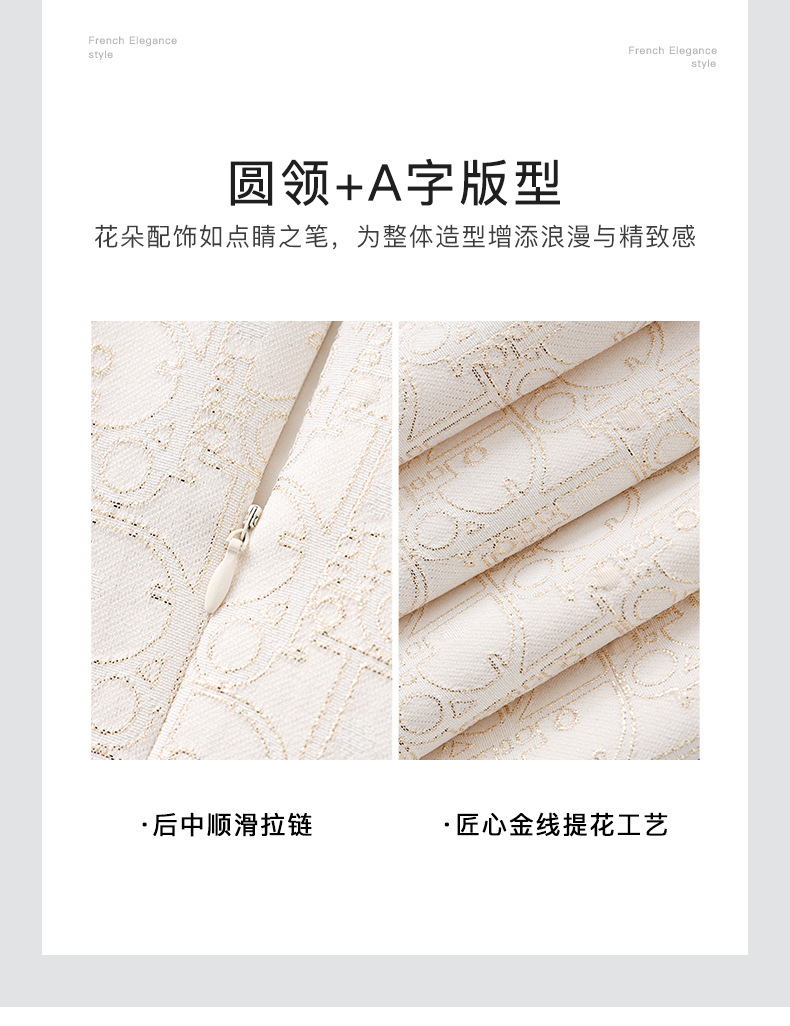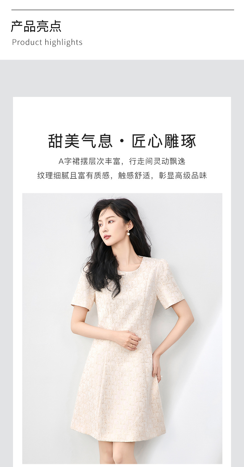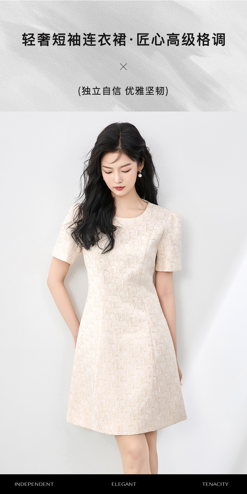 「高货wl」全新升级【铂金会员395/天猫529/差价134】(00441)洛诗琳2025新款优雅气质重工金线提花字母圆领通勤连衣裙