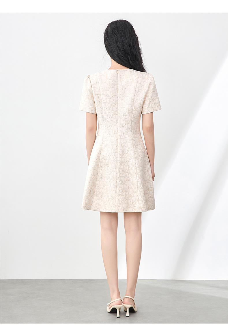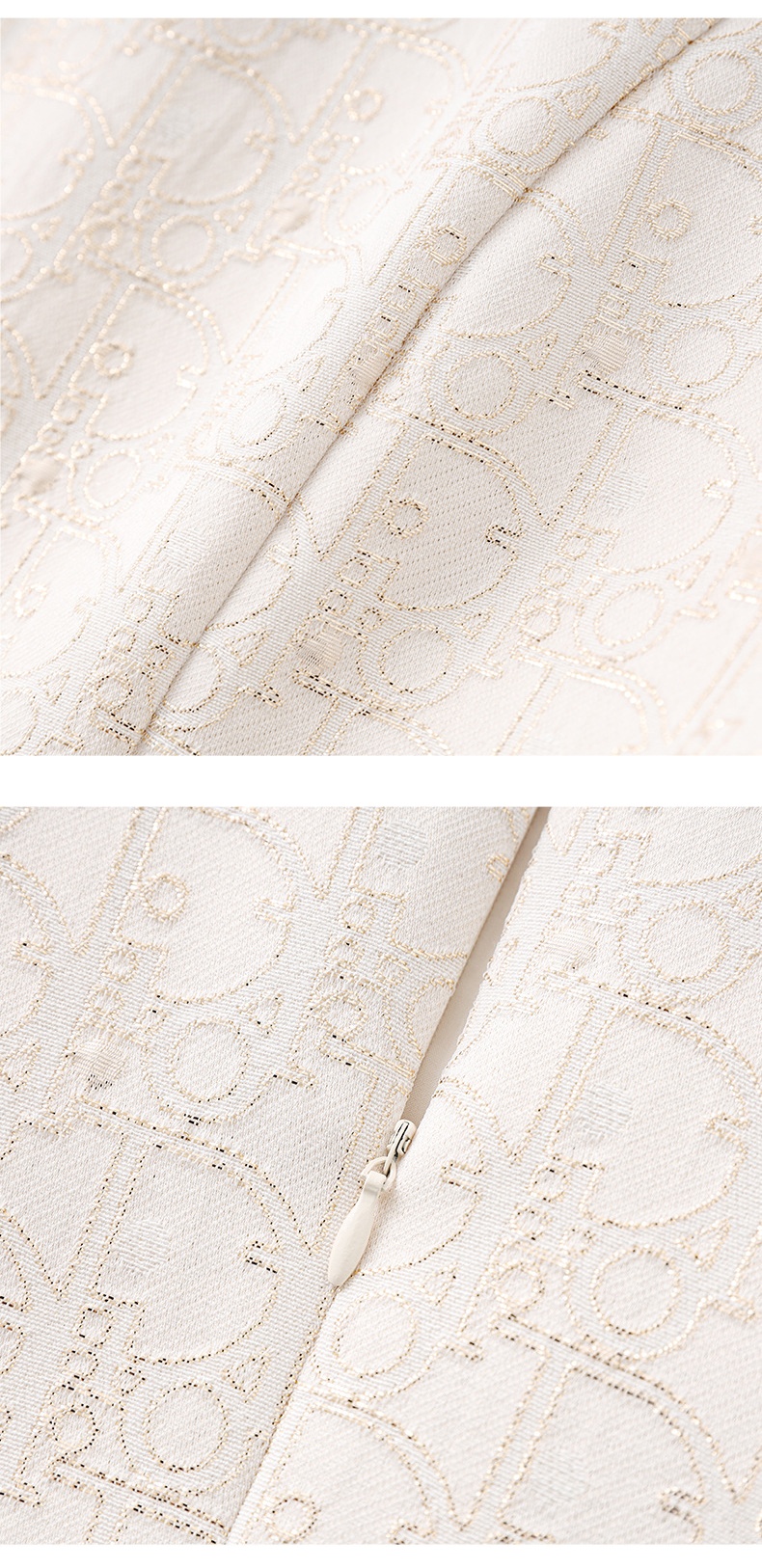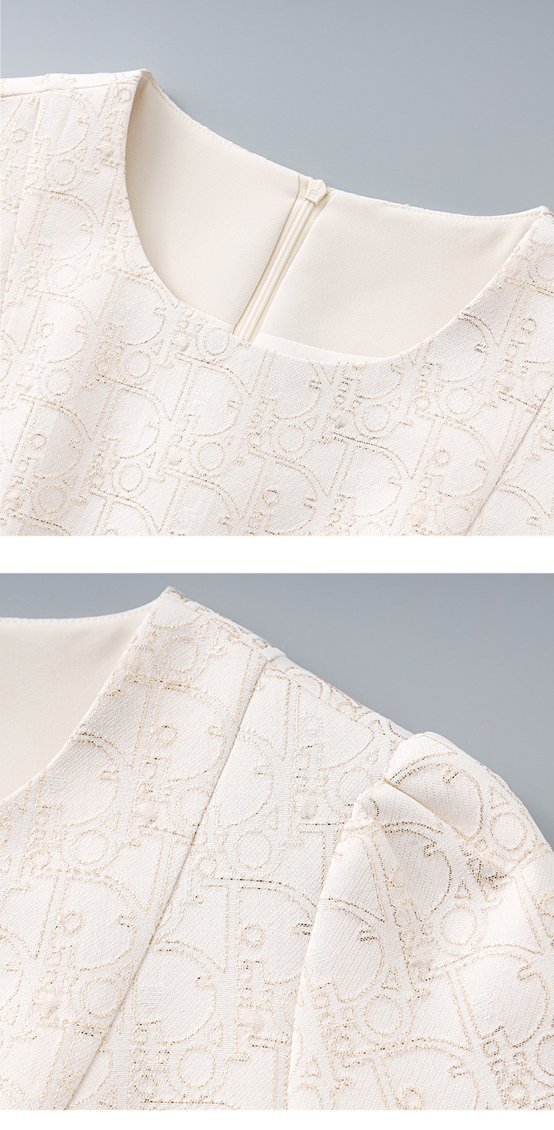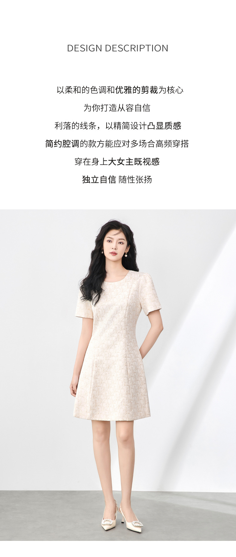 「高货wl」全新升级【铂金会员395/天猫529/差价134】(00441)洛诗琳2025新款优雅气质重工金线提花字母圆领通勤连衣裙