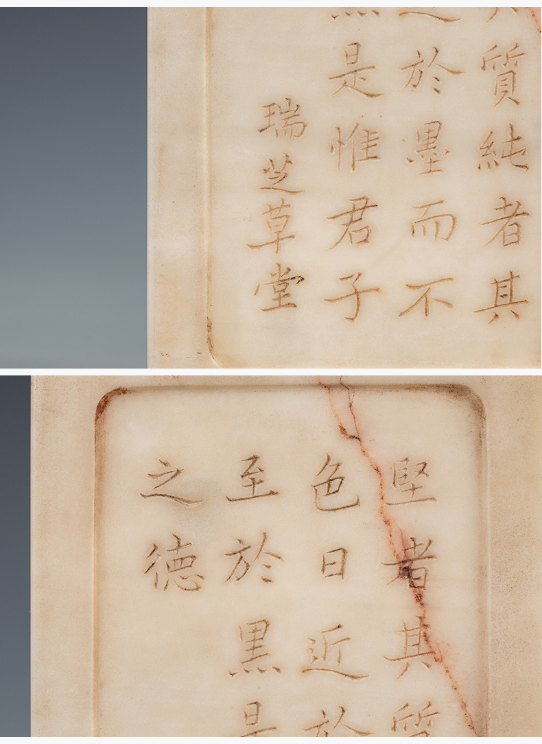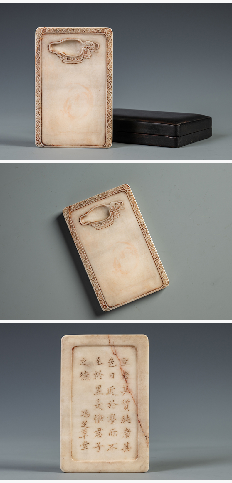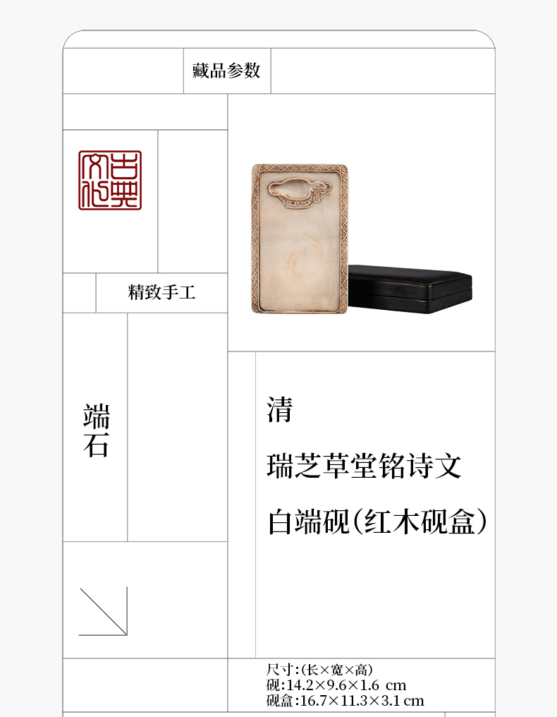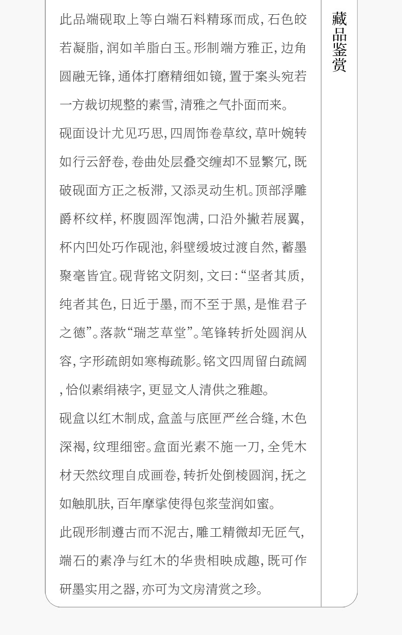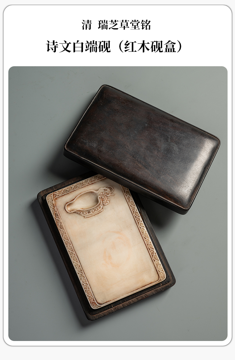 清 瑞芝草堂铭诗文白端砚(红木砚盒)